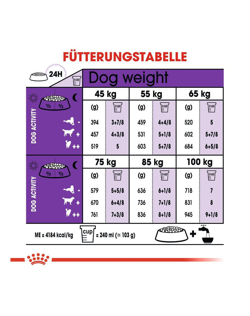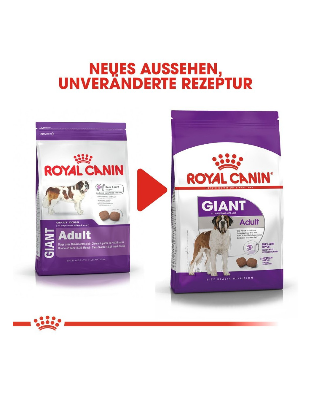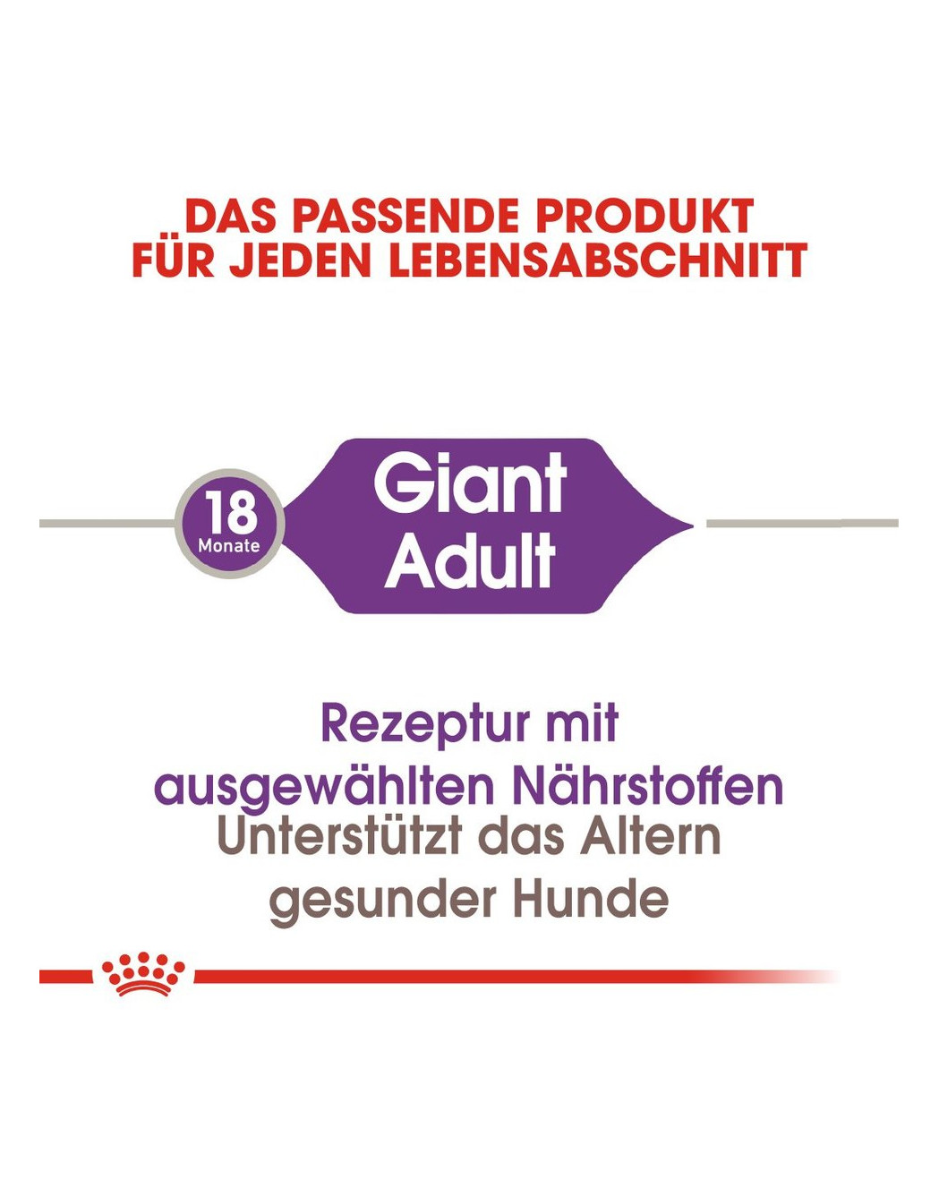 ROYAL CANIN® GIANT ADULT biedt een voedingsrijke en evenwichtige formule die voldoet aan de specifieke behoeften van uw zeer grote, volwassen hond en hem ondersteunt.