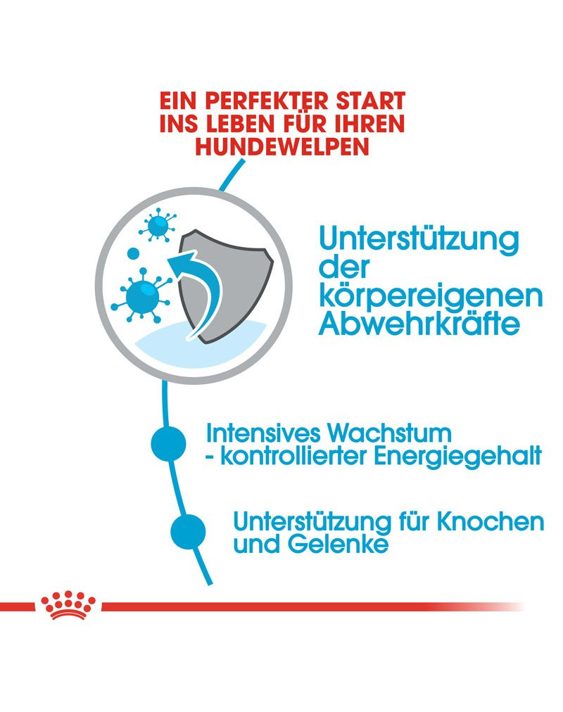 ROYAL CANIN Giant Puppy is geschikt voor puppy's van reuzenrassen van 2 tot 8 maanden oud, die in volwassen leeftijd een gemiddeld gewicht van 45 kg en meer bereiken.