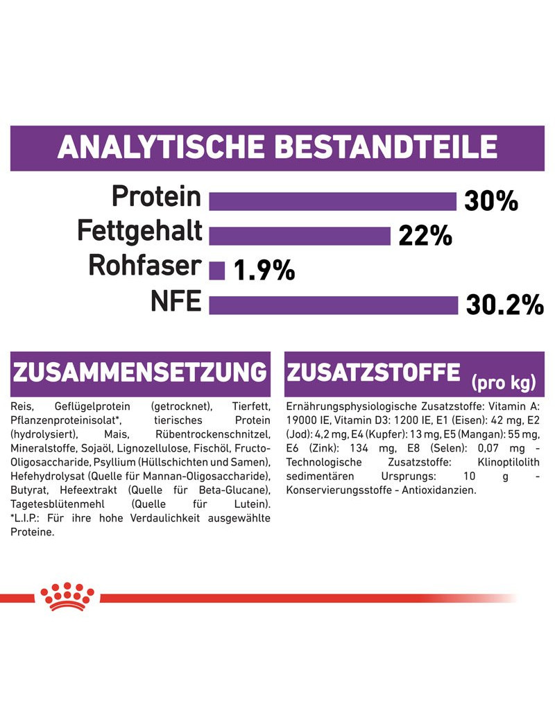 Tijdens de dracht en lactatie hebben teven heel bijzondere voedingsbehoeften. Ze hebben voedsel nodig dat zich kenmerkt door een hoog eiwit-, energie- en mineralengehalte. Daarom heeft ROYAL CANIN Giant Starter Mother & Babydog een speciaal voedingsprofiel dat het spijsverteringssysteem en de algehele gezondheid van de teef en de gezondheid van haar puppy's ondersteunt.