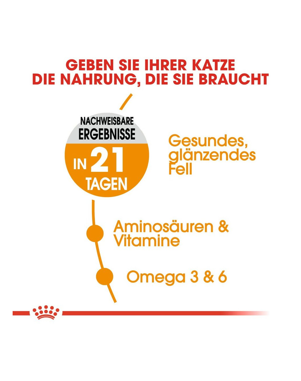 ROYAL CANIN Hair & Skin toont aantoonbaar effect: Bij exclusieve voeding met Hair & Skin voer heeft de vacht van de kat na slechts 21 dagen zichtbaar meer glans.