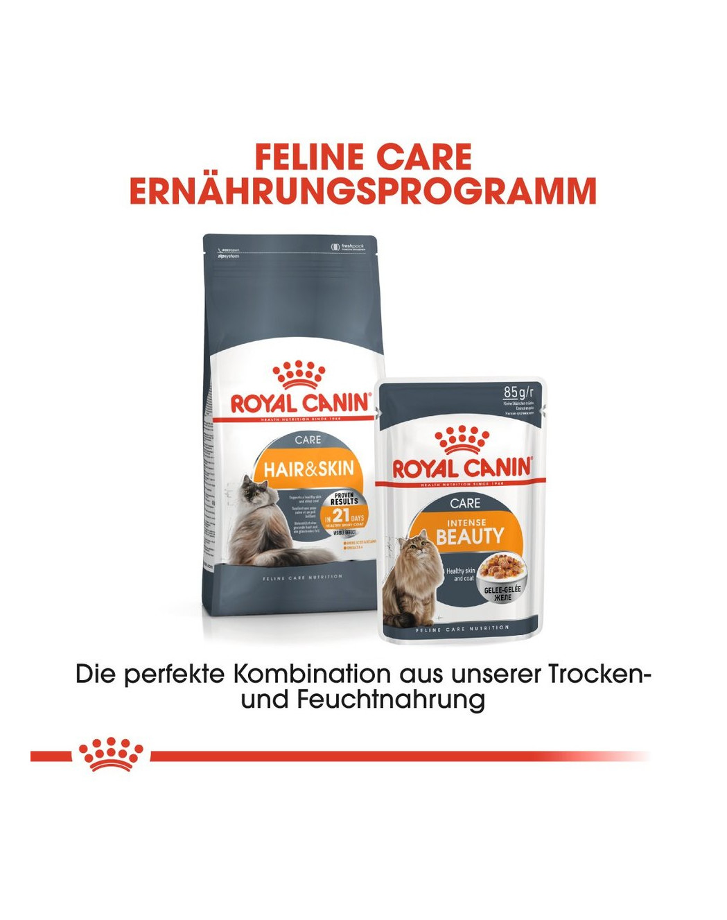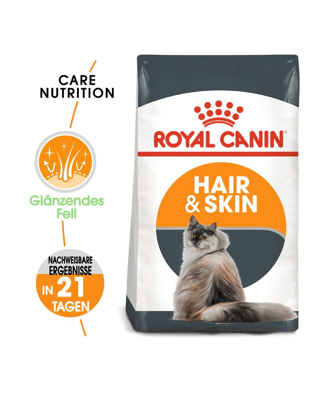 ROYAL CANIN Hair & Skin Care is een exclusieve voedingsstofcomplex dat de barrièrefunctie van de huid ondersteunt. Het voer bevat hoogwaardige eiwitten, inclusief geselecteerde aminozuren, die de haargroei en de huidvernieuwing bevorderen.