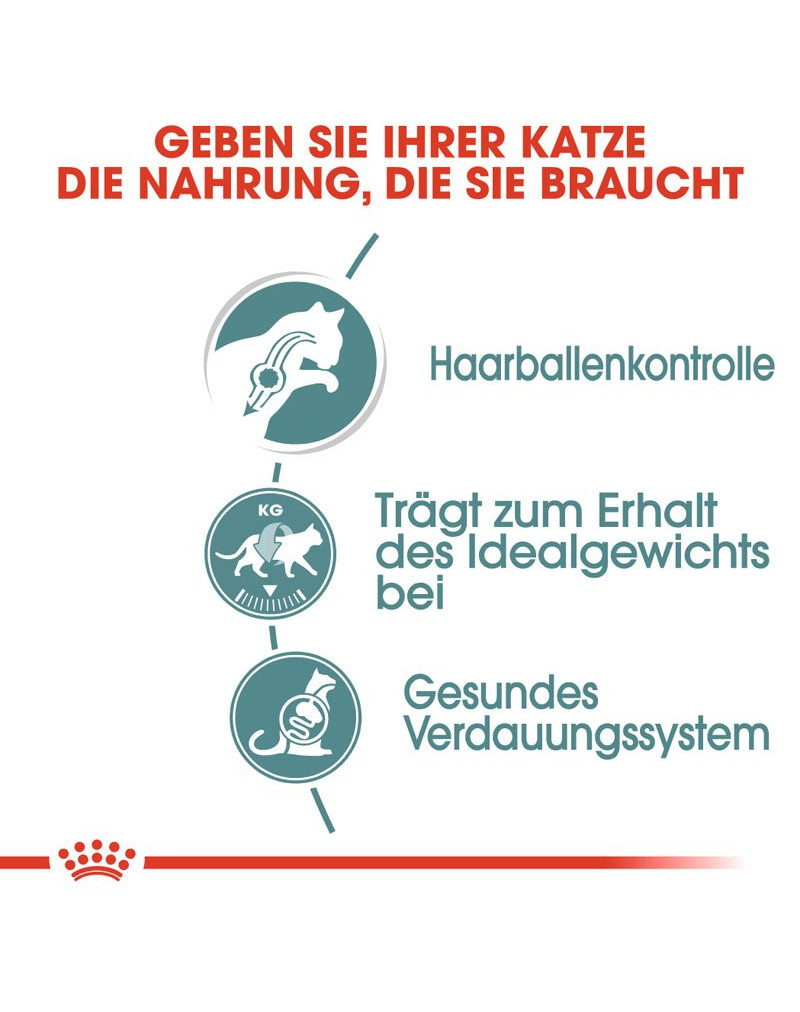 ROYAL CANIN® Hairballvoer is ook verkrijgbaar in de vorm van stukjes in gelei en als droogvoer. Een gemengde voeding van nat- en droogvoer wordt door veel katten geprefereerd. Droogvoer heeft een positieve invloed op de mondhygiëne en is gemakkelijk op te slaan, terwijl natvoer de juiste vochtinname van het lichaam en de gezondheid van de urinewegen bevordert.