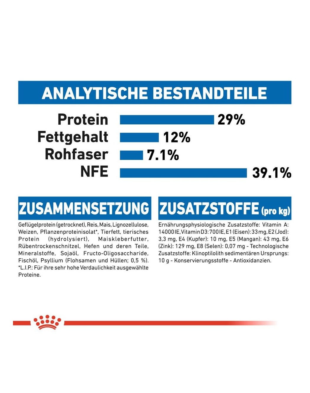 Dank der Zugabe spezieller Nahrungsfasern, einschließlich Psyllium, stimuliert ROYAL CANIN Indoor Appetite Control die Darmtätigkeit auf natürliche Weise, wodurch das Auftreten von Haarballen reduziert wird.