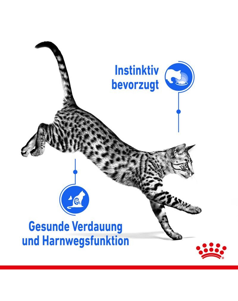 Das instinktiv bevorzugte Nährstoffprofil mit entsprechenden Anteilen der Energie aus Eiweiß, Fett und Kohlehydraten sorgt außerdem dafür, dass die Kalorienzufuhr auf das Aktivitätsniveau der Wohnungskatze abgestimmt ist. Dies trägt zum Erhalt eines gesunden Gewichts bei.