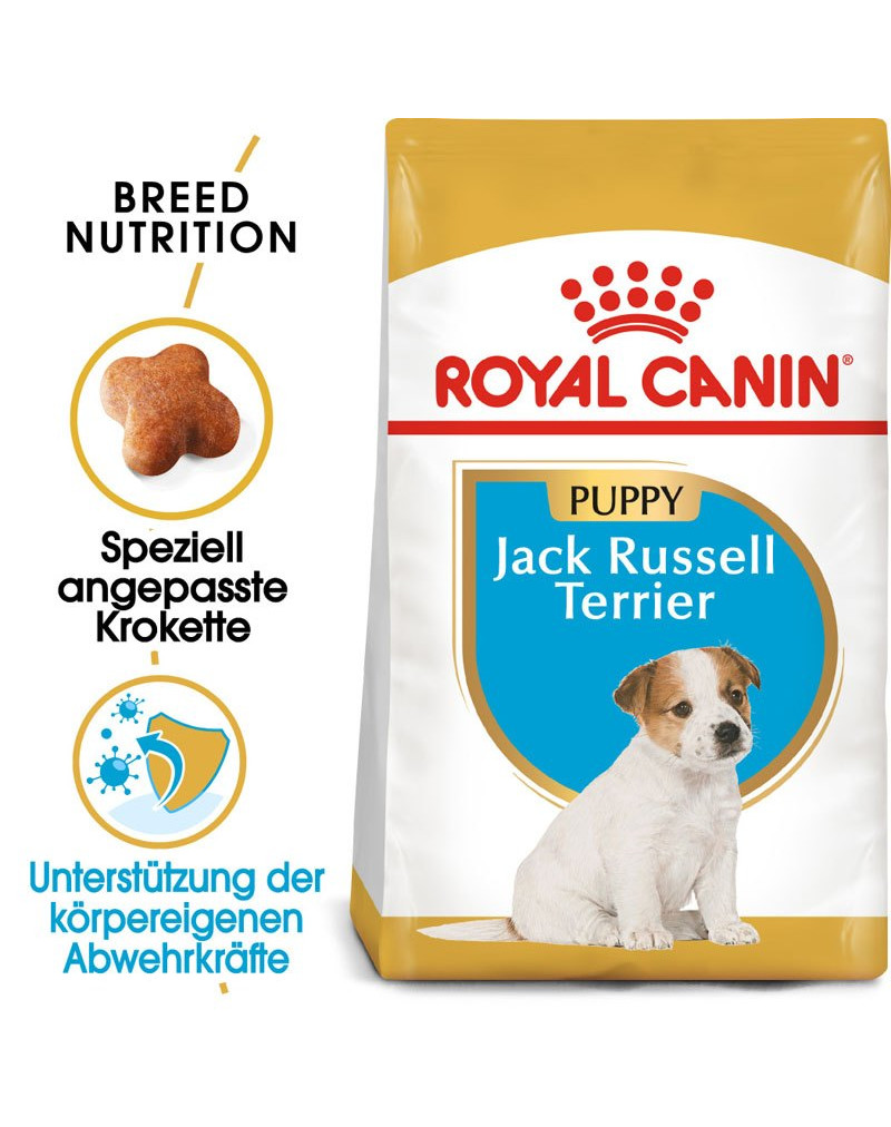 ROYAL CANIN Jack Russell Terrier Puppy is speciaal ontwikkeld voor Jack Russell puppy's tot 10 maanden. Dankzij een exclusieve antioxidantencomplex (inclusief vitamine E) helpt het puppyvoer om de natuurlijke afweer te ondersteunen, terwijl deze zich geleidelijk ontwikkelt. Verder bevat ROYAL CANIN Jack Russell Terrier Puppy een speciale combinatie van voedingsstoffen met hoogwaardig eiwit (L.I.P.), dat speciaal is geselecteerd vanwege de hoge verteerbaarheid. Bovendien helpen de in de formule aanwezige voedingsstoffen om een gezonde balans van de darmflora te behouden, wat op zijn beurt bijdraagt aan een goede ontlastingkwaliteit.