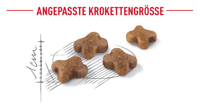 Een speciaal ontwikkelde brok met aangepaste grootte, vorm en textuur kan een belangrijke rol spelen voor een gezonde spijsvertering, schone tanden en goede acceptatie.