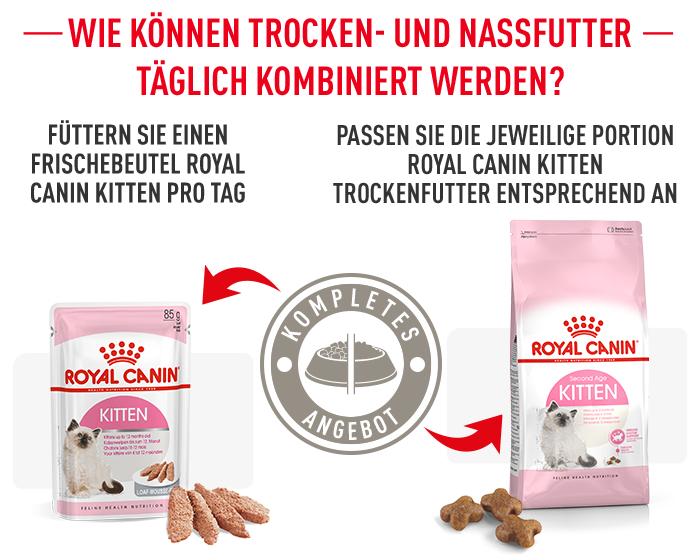 – Het productassortiment ROYAL CANIN Kitten biedt uw kitten de perfecte start. Kies de juiste combinatie van nat- en droogvoer.