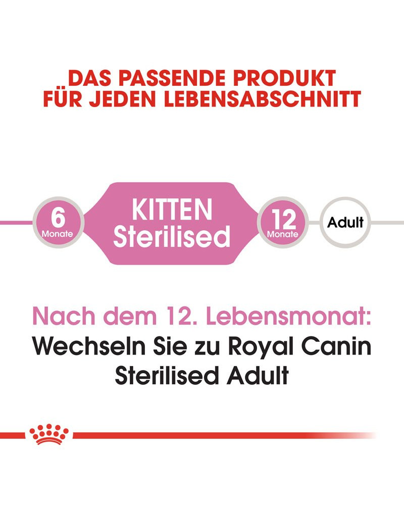 ROYAL CANIN Kitten Gesteriliseerd is gericht op deze speciale behoeften van gesteriliseerde kittens in deze cruciale ontwikkelingsfase.