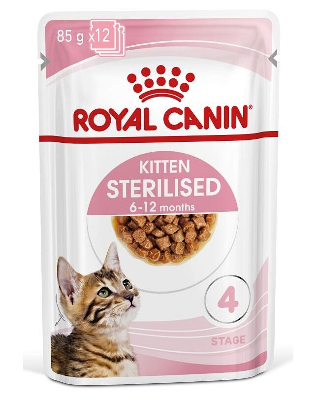 Volledig voer voor gecastreerde katten in de groei (van 6 tot 12 maanden) (kleine stukjes in saus).