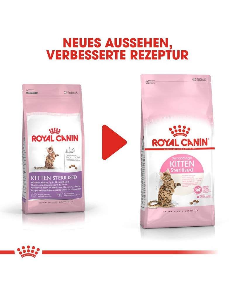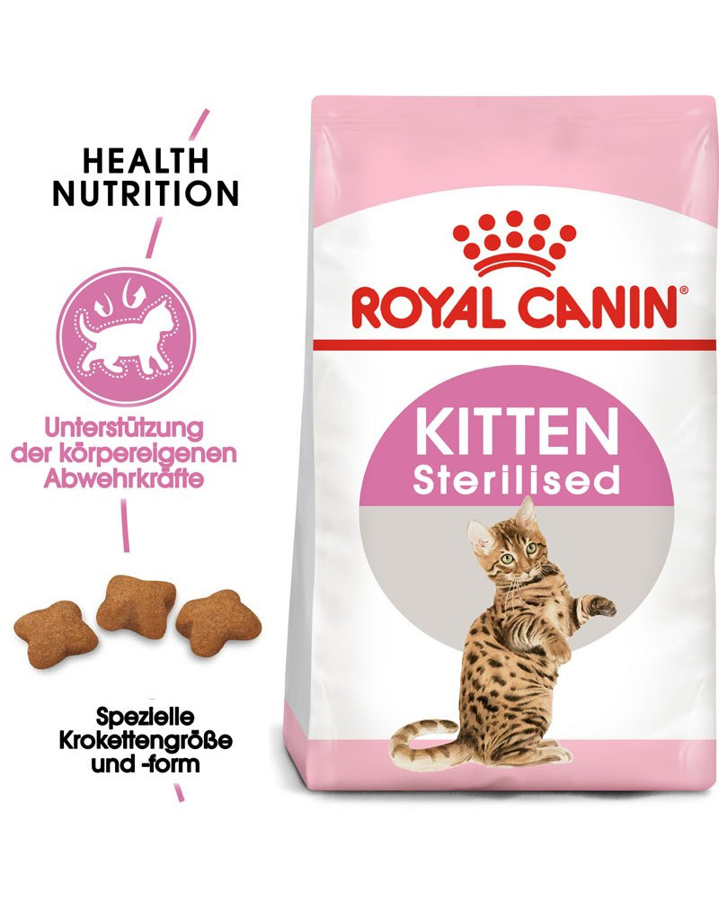 ROYAL CANIN Kitten Sterilised is gericht op deze speciale behoeften van gecastreerde kittens in deze cruciale ontwikkelingsfase.
