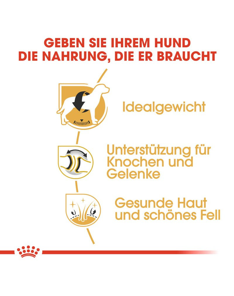 • ROYAL CANIN Labrador Retriever Adult ist für Labrador Retriever ab dem 15. Lebensmonat geeignet und wurde speziell auf die Bedürfnisse dieser Rasse abgestimmt.