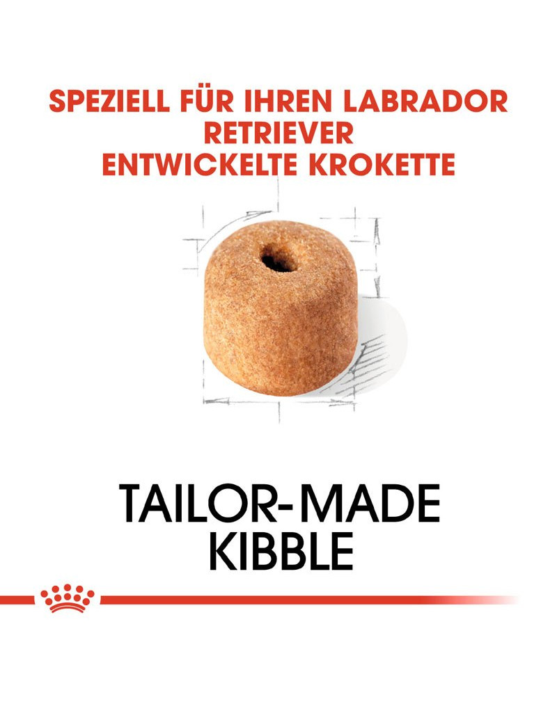 • ROYAL CANIN Labrador Retriever Adult hat einen speziell angepassten Energiegehalt mit erhöhtem Proteinlevel und verringertem Fettgehalt, um Ihrem Labrador dabei zu helfen, sein Idealgewicht zu halten.