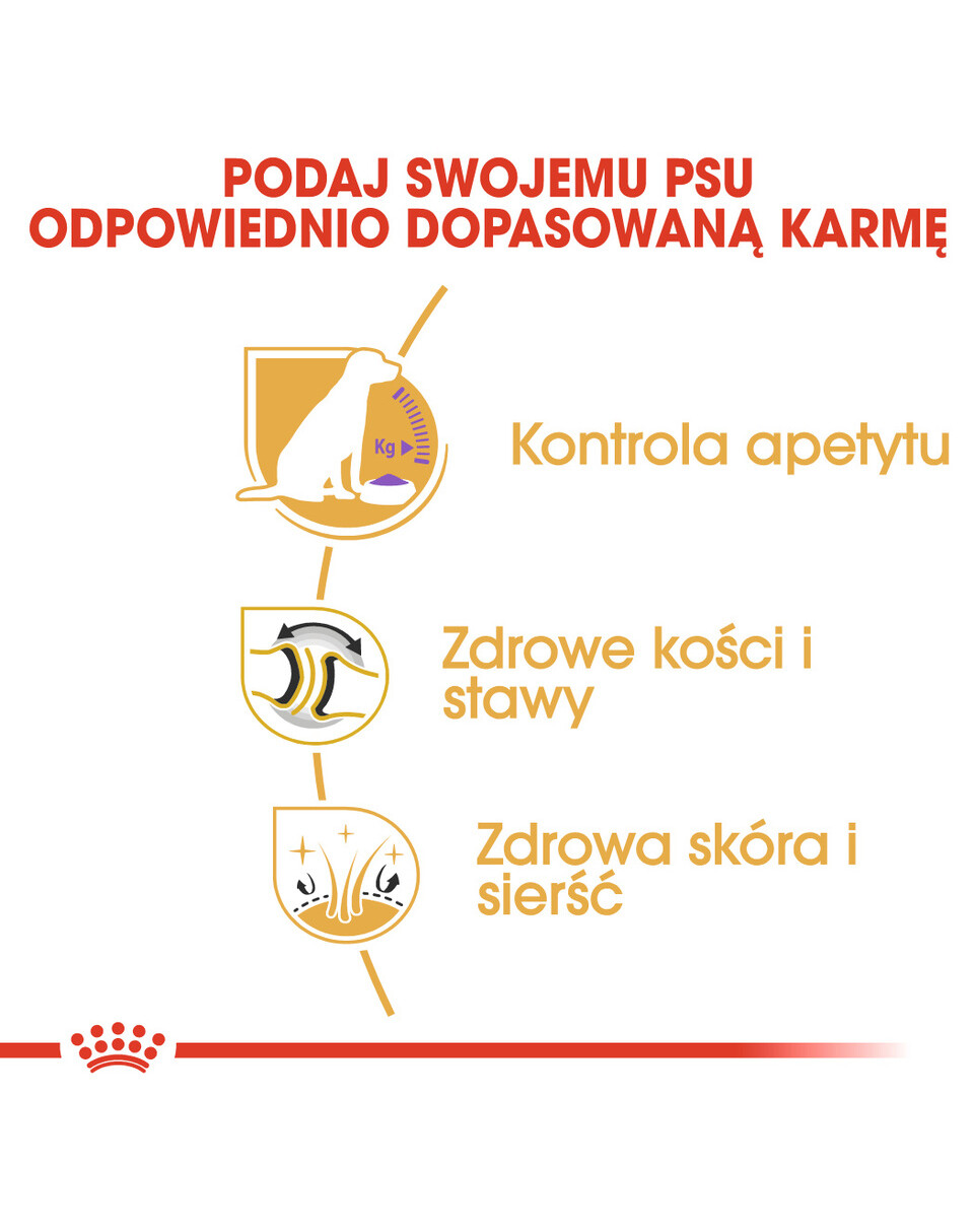 Labrador Retrievers zijn atletische en energieke honden die naast hun dagelijkse wandelingen een goede dosis extra lichamelijke activiteit nodig hebben. ROYAL CANIN® Labrador Retriever Sterilised is verrijkt met voedingsstoffen zoals EPA- en DHA-vetzuren, glucosamine en chondroïtine om de gezondheid van de gewrichten en botten van uw hond te bevorderen.