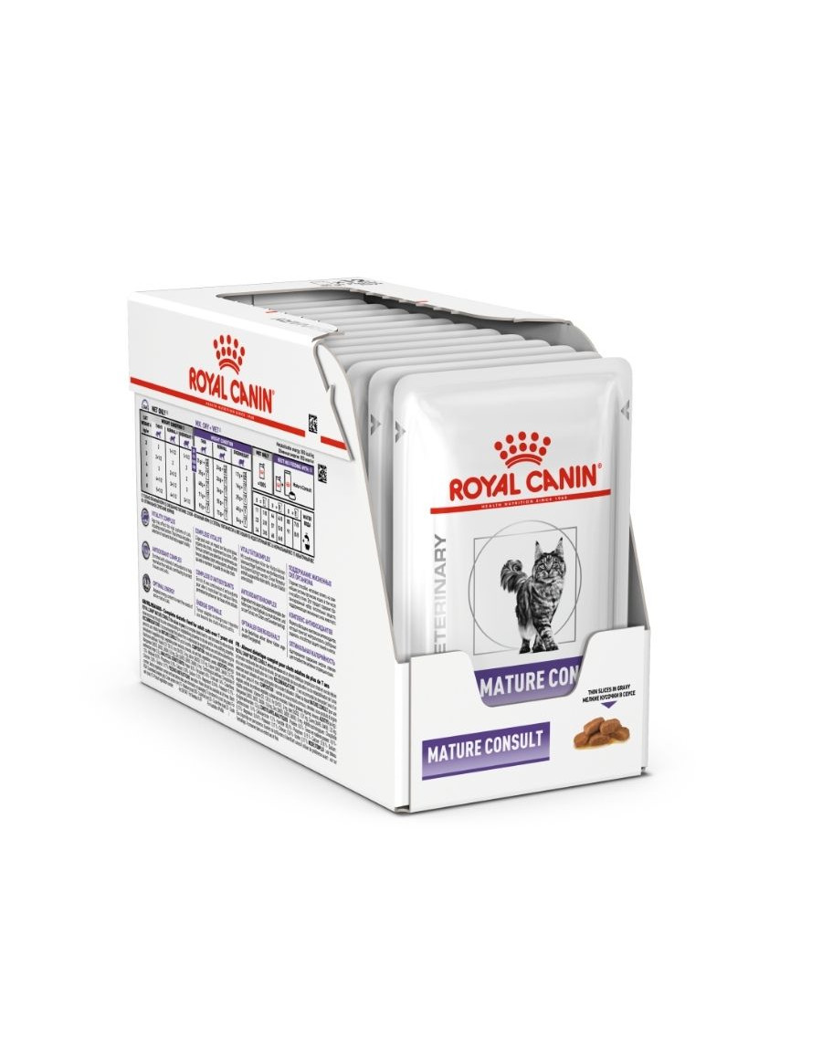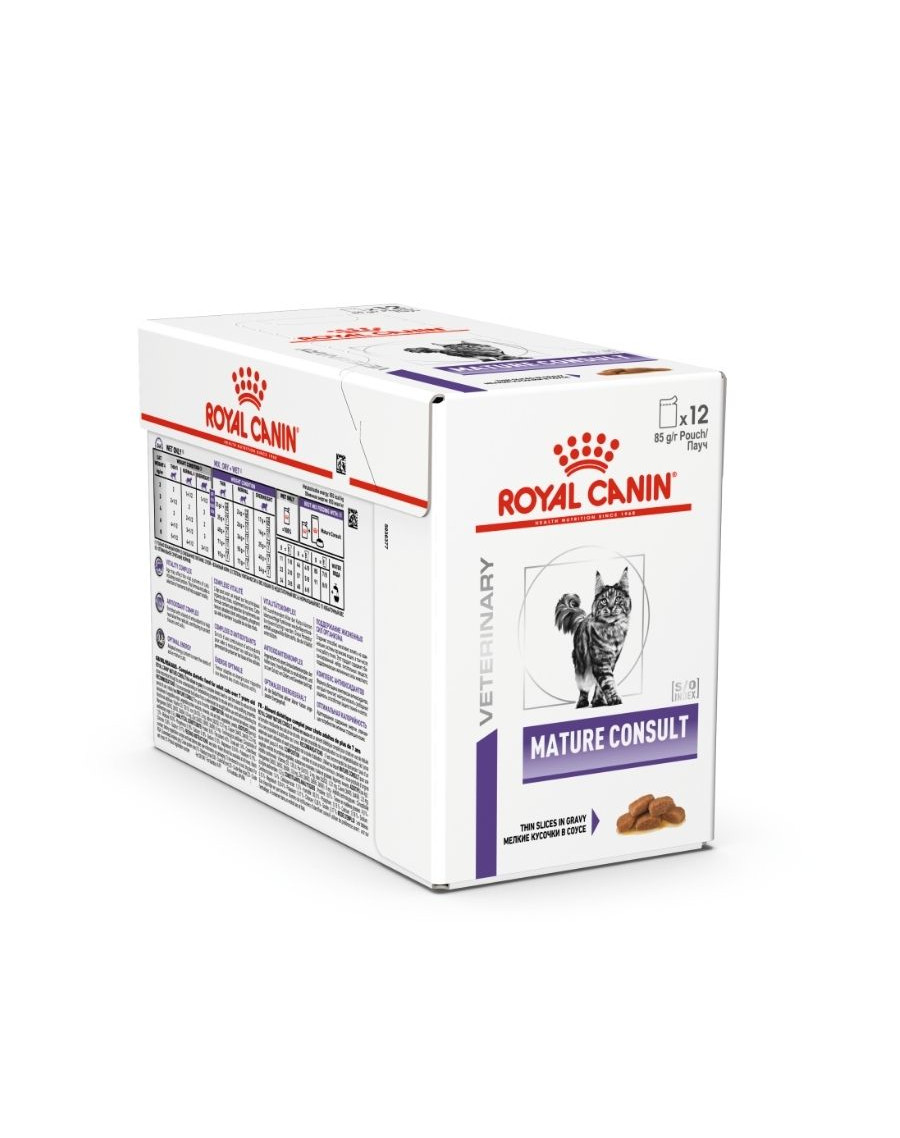 Royal Canin Veterinary Mature Consult Balance Loaf katten-nassfutter (85 gram zak) is een smakelijk voer voor oudere, vitale katten (vanaf 7 jaar). De leeftijd kan natuurlijk invloed hebben op de vitale systemen van uw kat, zoals de nierfunctie. Dit voer bevat voedingsstoffen die de vitaliteit van uw verouderende kat ondersteunen. Een aangepaste energie-inhoud helpt om het ideale lichaamsgewicht te behouden. Bovendien is dit voer verrijkt met een mix van antioxidanten om vrije radicalen te neutraliseren en zo weefsels en cellen te beschermen.