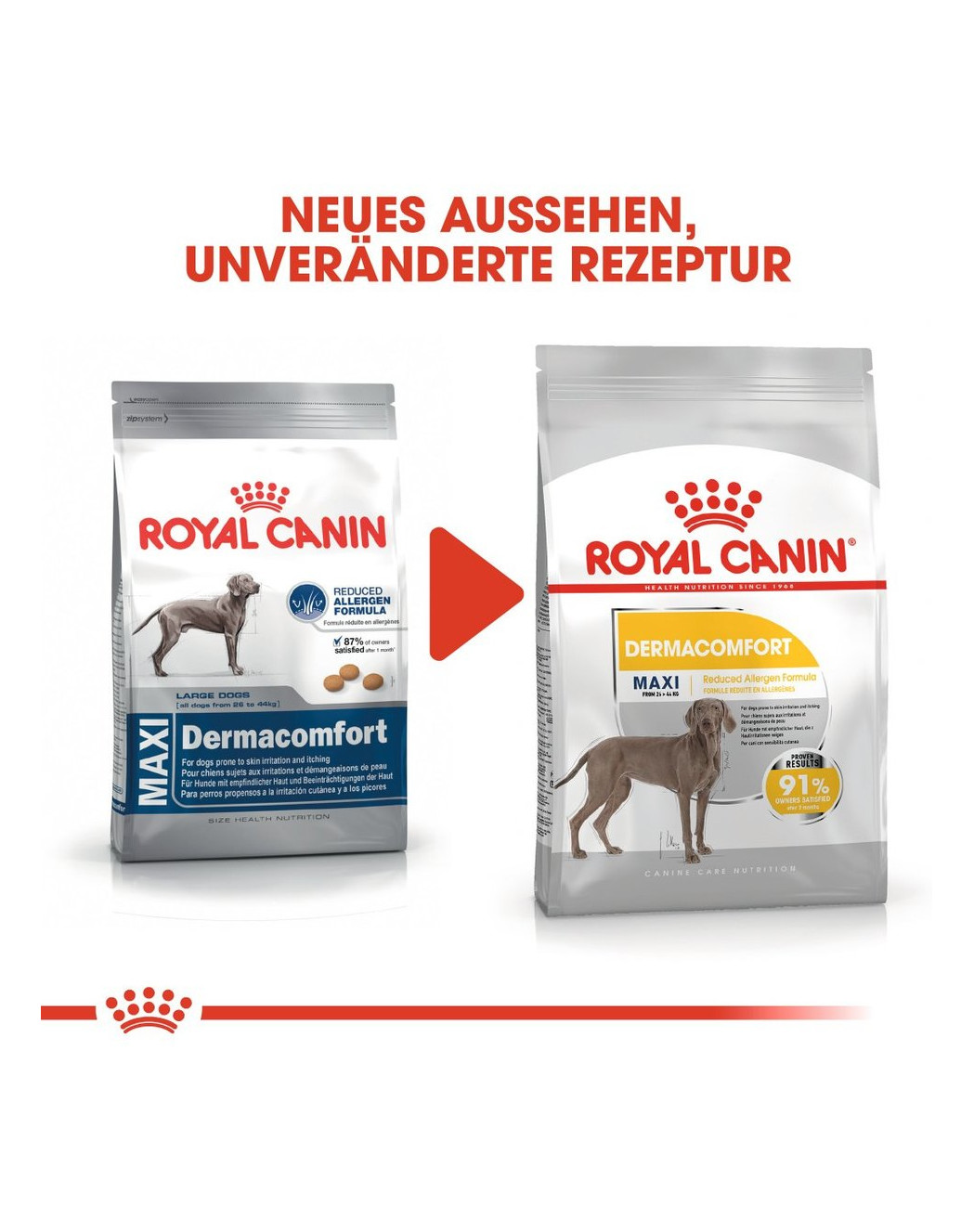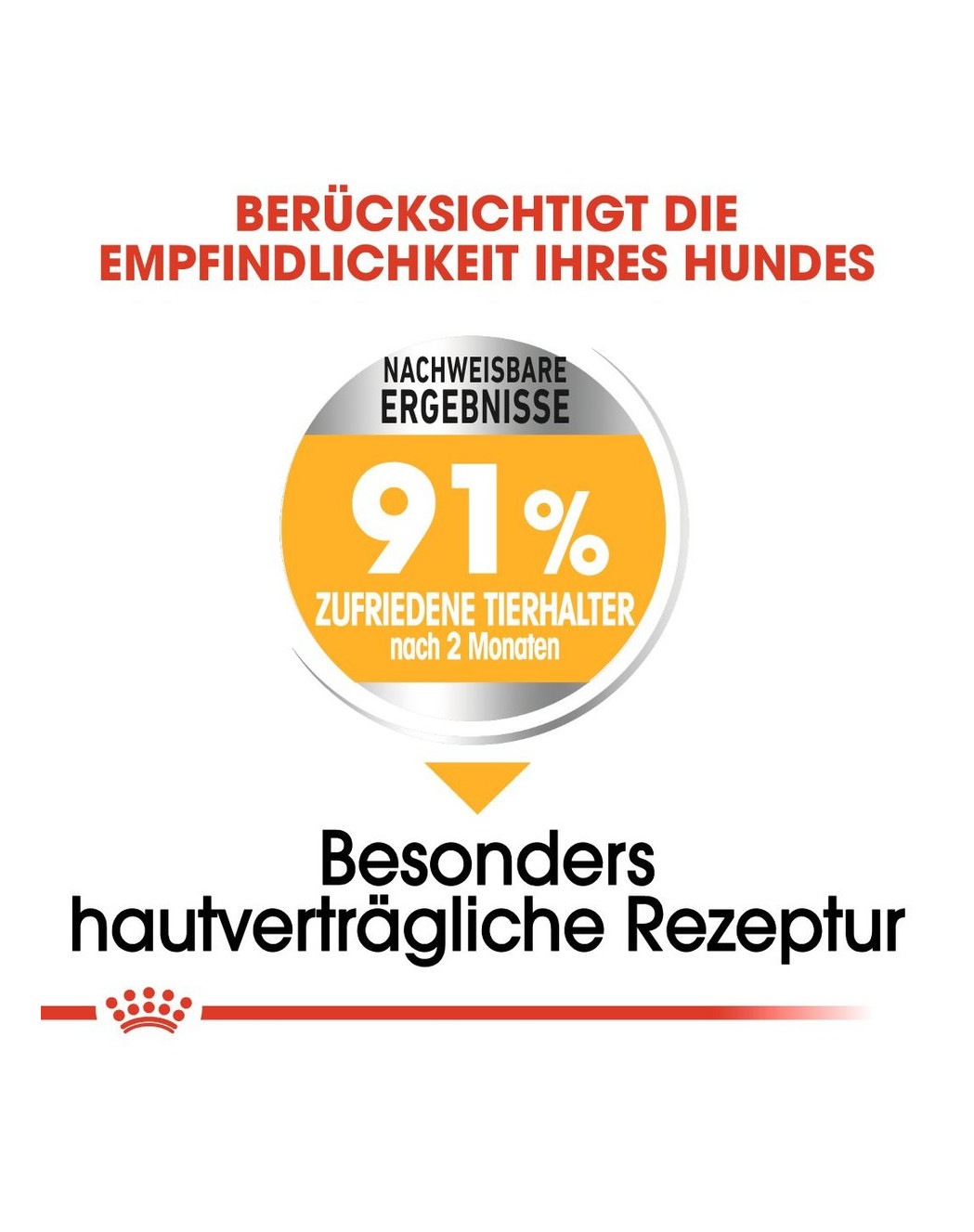 Niet alleen wij zijn enthousiast over ons product; ook 91% van de hondenbezitters was na slechts 2 maanden gebruik overtuigd. ROYAL CANIN Dermacomfort Mini is dus bewezen uitstekend geschikt voor honden met een neiging tot huidirritaties.