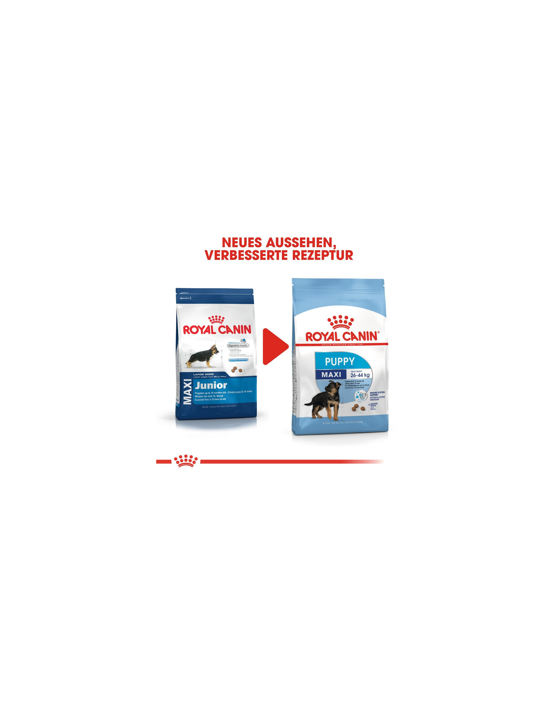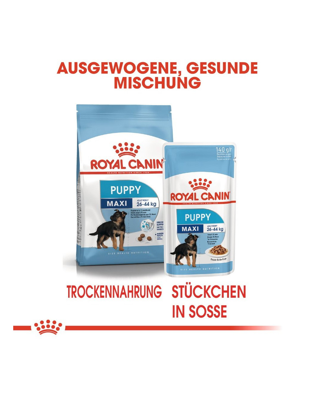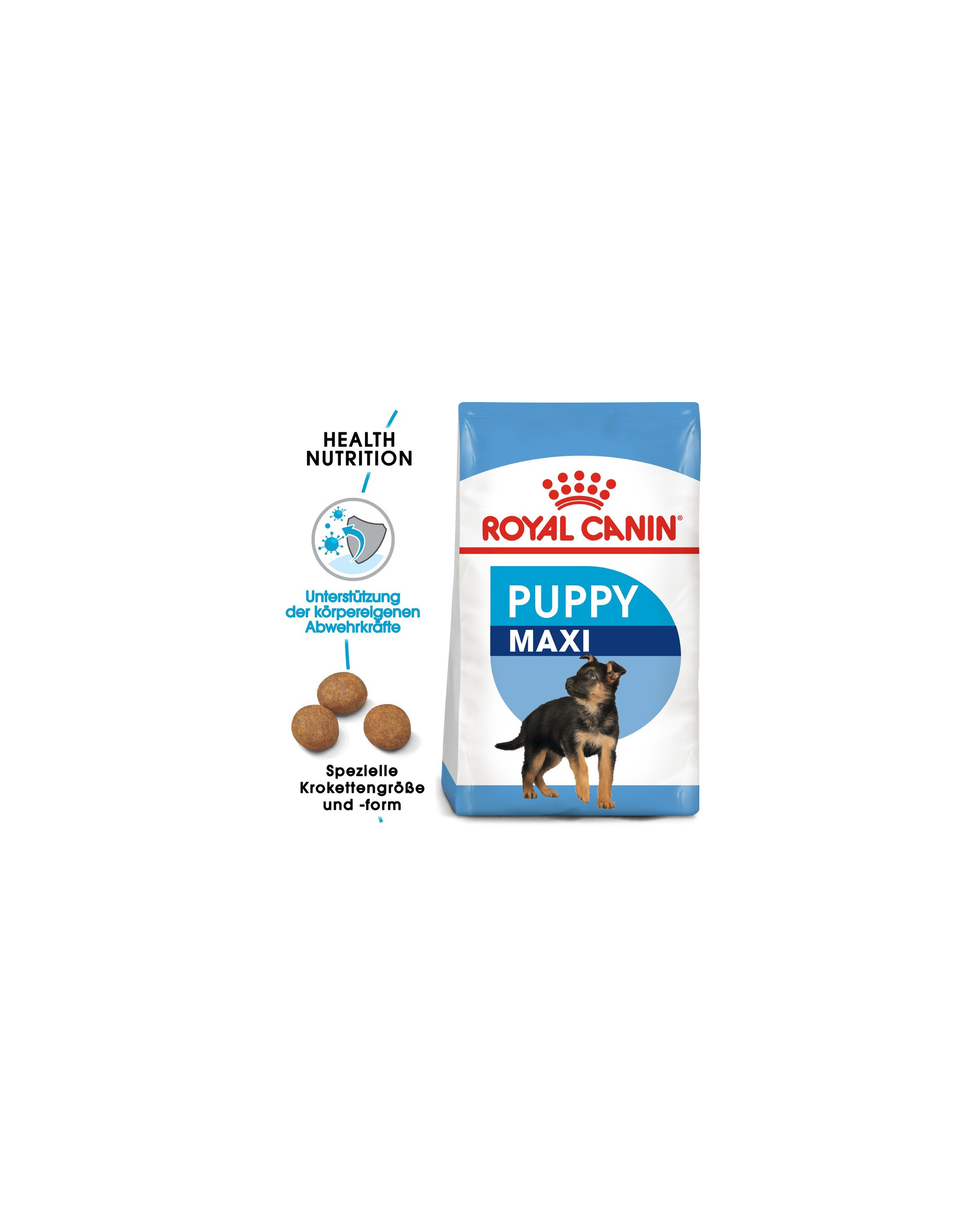 ROYAL CANIN Maxi Puppy is speciaal afgestemd op de voedingsbehoeften van een puppy van grote rassen. Het voer is geschikt voor grote puppy's van 2-15 maanden die in volwassen toestand een gewicht van ongeveer 26 kg-44 kg bereiken.