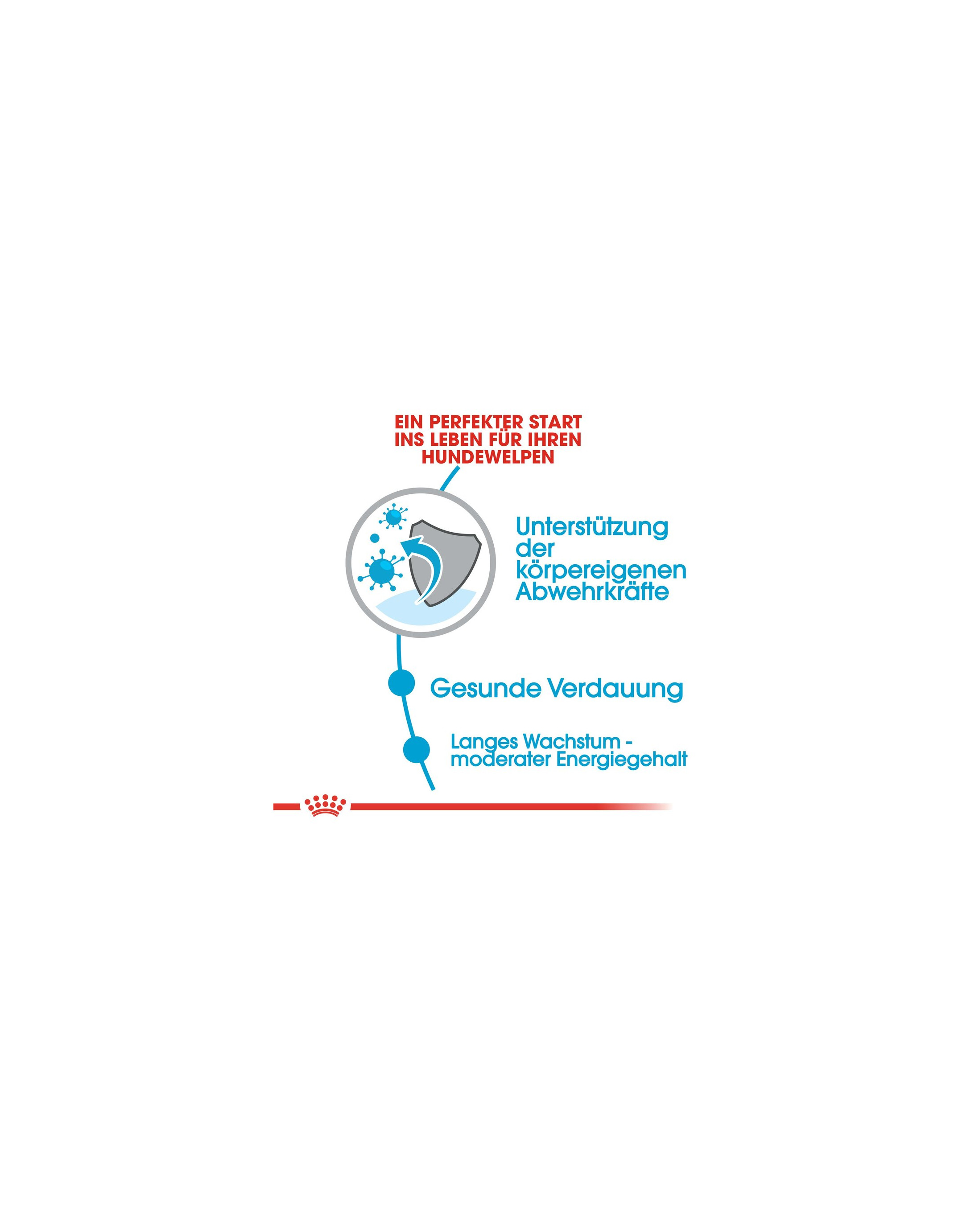 Hoogwaardige L.I.P. eiwitten, die zich onderscheiden door een zeer hoge verteerbaarheid, evenals prebiotica zoals FOS, dragen bij aan een evenwichtige darmflora van de puppy. Dit draagt op zijn beurt bij aan een goede ontlasting van uw hond.