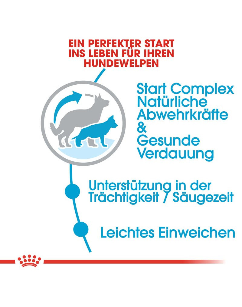 Als resultaat van voortdurende wetenschappelijke onderzoeken bij ROYAL CANIN bevat START COMPLEX een speciale samenstelling van voedingsstoffen die in moedermelk aanwezig zijn, evenals speciale additieven die actief bijdragen aan de spijsverteringszekerheid van de puppy's. Het ondersteunt ook de opbouw van de natuurlijke afweer van de puppy's in hun eerste levensfase, waarin hun immuunsysteem nog niet volledig ontwikkeld is.