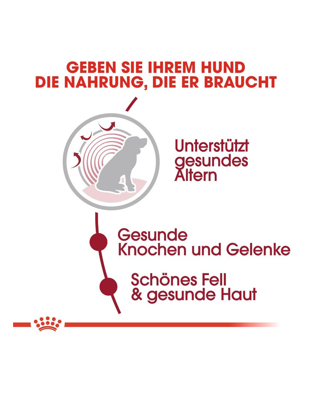 Größe und Form der Kroketten wurden speziell an die Kieferstruktur und das Fressverhalten älterer Hunde angepasst. Die speziell entwickelte Krokette regt ältere Hunde dazu an, ihr Futter gründlich zu kauen.