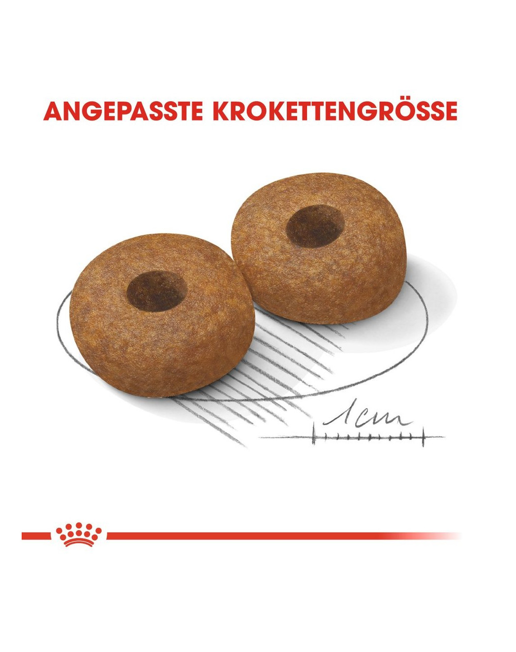 - ANGEPASSTE KROKETTENGRÖSSE. Die Krokettengröße ist an die Kieferstruktur des Hundes angepasst und regt zum Kauen an.