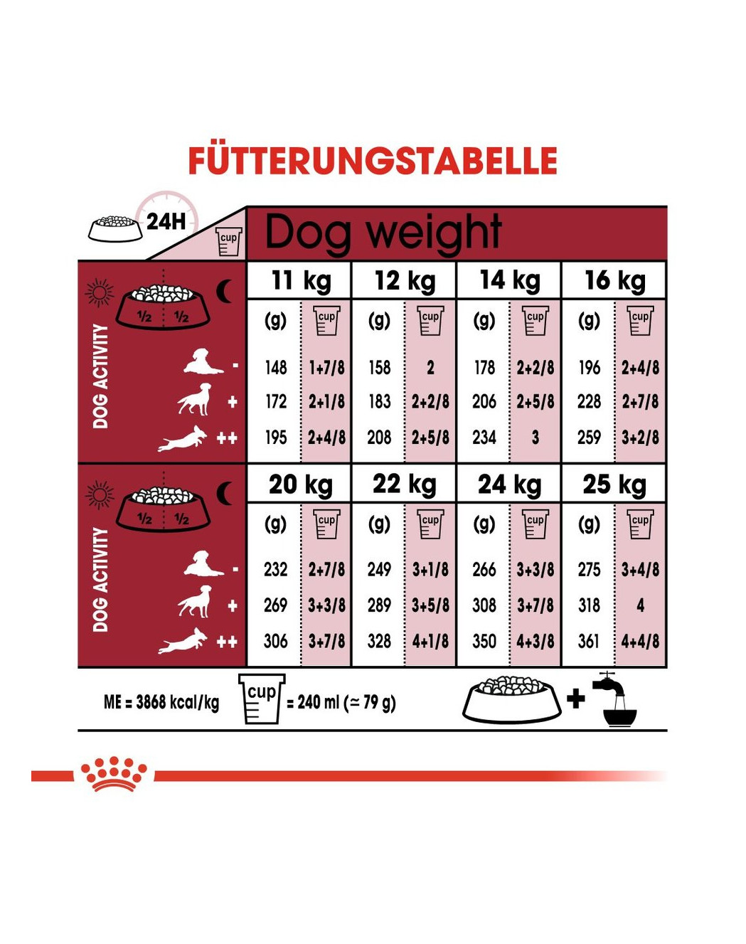 ANWENDUNG: siehe Tabelle. Mindestens haltbar bis: siehe Haltbarkeitsdatum. Das Verfallsdatum, die Chargennummer und die Registriernummer des Werks befinden sich auf der Verpackung. Trocken und kühl lagern.