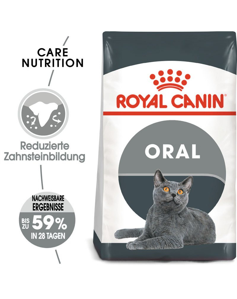 ROYAL CANIN Oral Care is een kattenvoer met een precies uitgebalanceerde voedingsformule die helpt de vorming van tandsteen te verminderen en zo bijdraagt aan tand- en mondhygiëne. Het bevat ook een hoog eiwit- en uitgebalanceerd mineraalgehalte ter ondersteuning en versterking van spieren, botten en tanden.