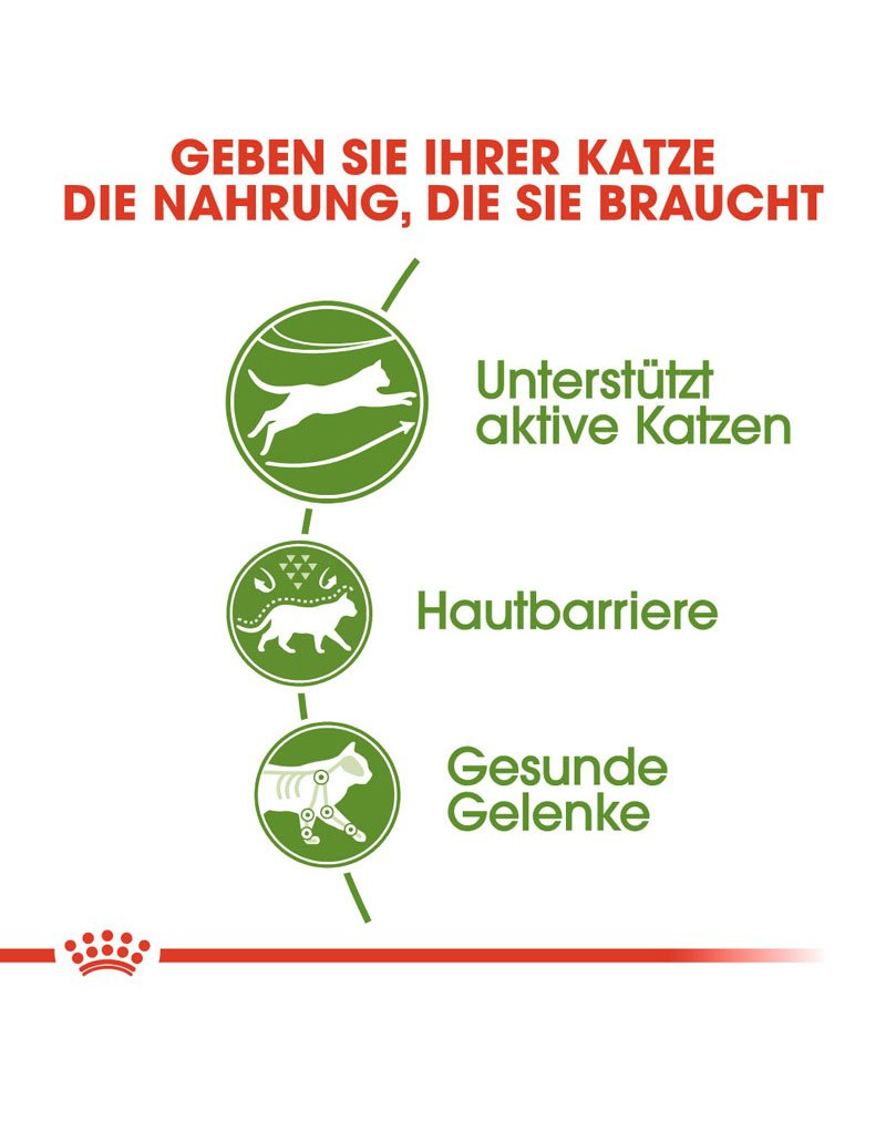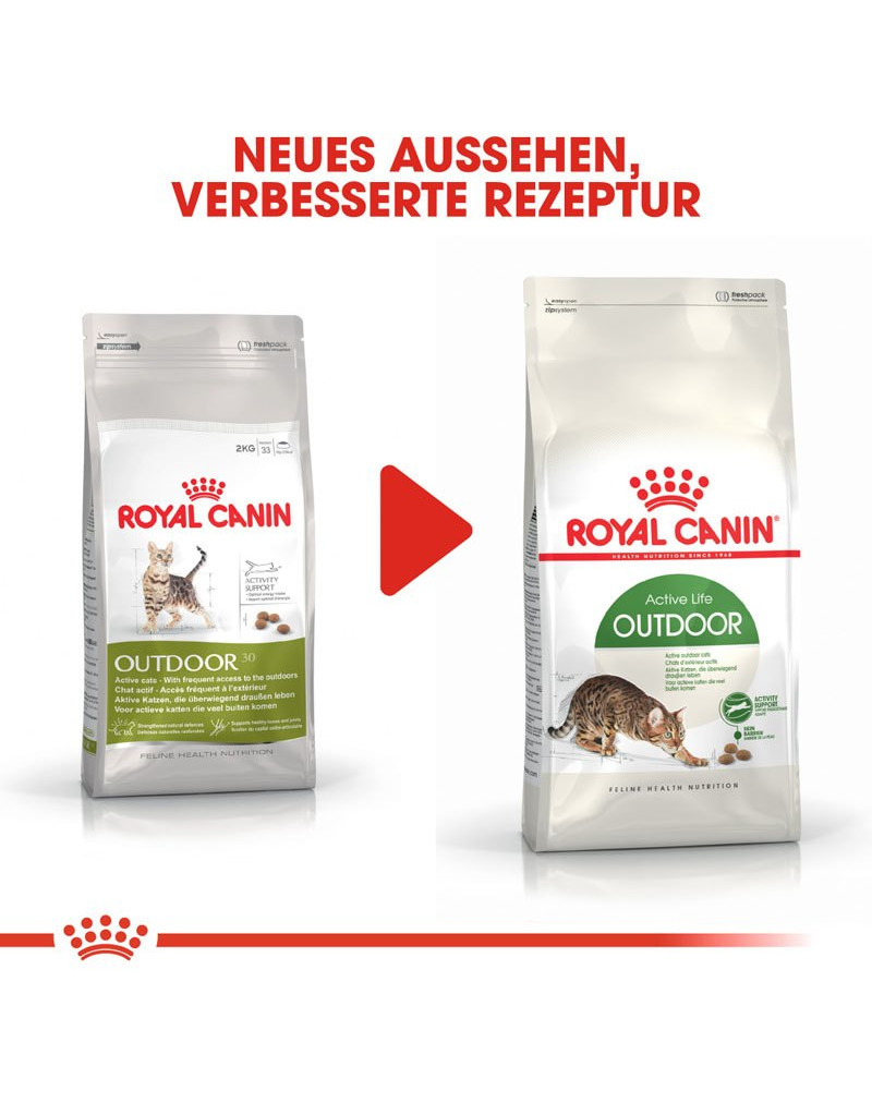 Katzen, die gerne draußen sind und einen aktiven Lebensstil führen, stellen besondere Bedürfnisse an ihre Ernährung. Darüber hinaus werden ihre Abwehrkräfte stetig gefordert. ROYAL CANIN Outdoor Katzenfutter hat einen hohen Energie- und Kaloriengehalt, um den Ernährungsbedürfnissen von Katzen mit einem aktiven Lebensstil und regelmäßigem Auslauf im Freien gerecht zu werden.