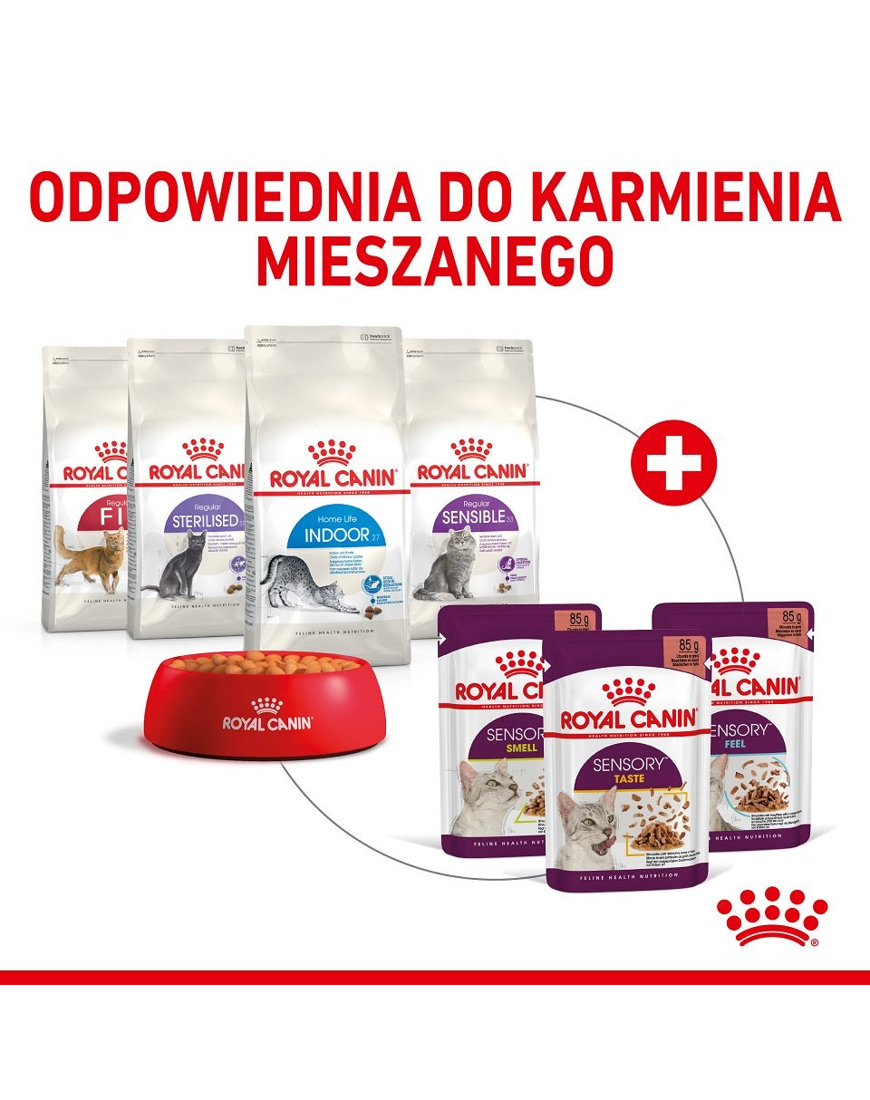 Het welzijn van uw kat wordt verhoogd wanneer haar voeding niet alleen voedzaam, maar ook sensorisch gevarieerd is. De textuur van ROYAL CANIN® Sensory Taste is romig en zacht, en de smakelijke saus hecht goed aan de stukjes. Het voer is speciaal geformuleerd om de smaakzin van katten intensief te stimuleren. De receptuur van het voer is ontwikkeld voor een optimaal macronutriëntenprofiel dat aansluit bij de natuurlijke voorkeuren van volwassen katten.