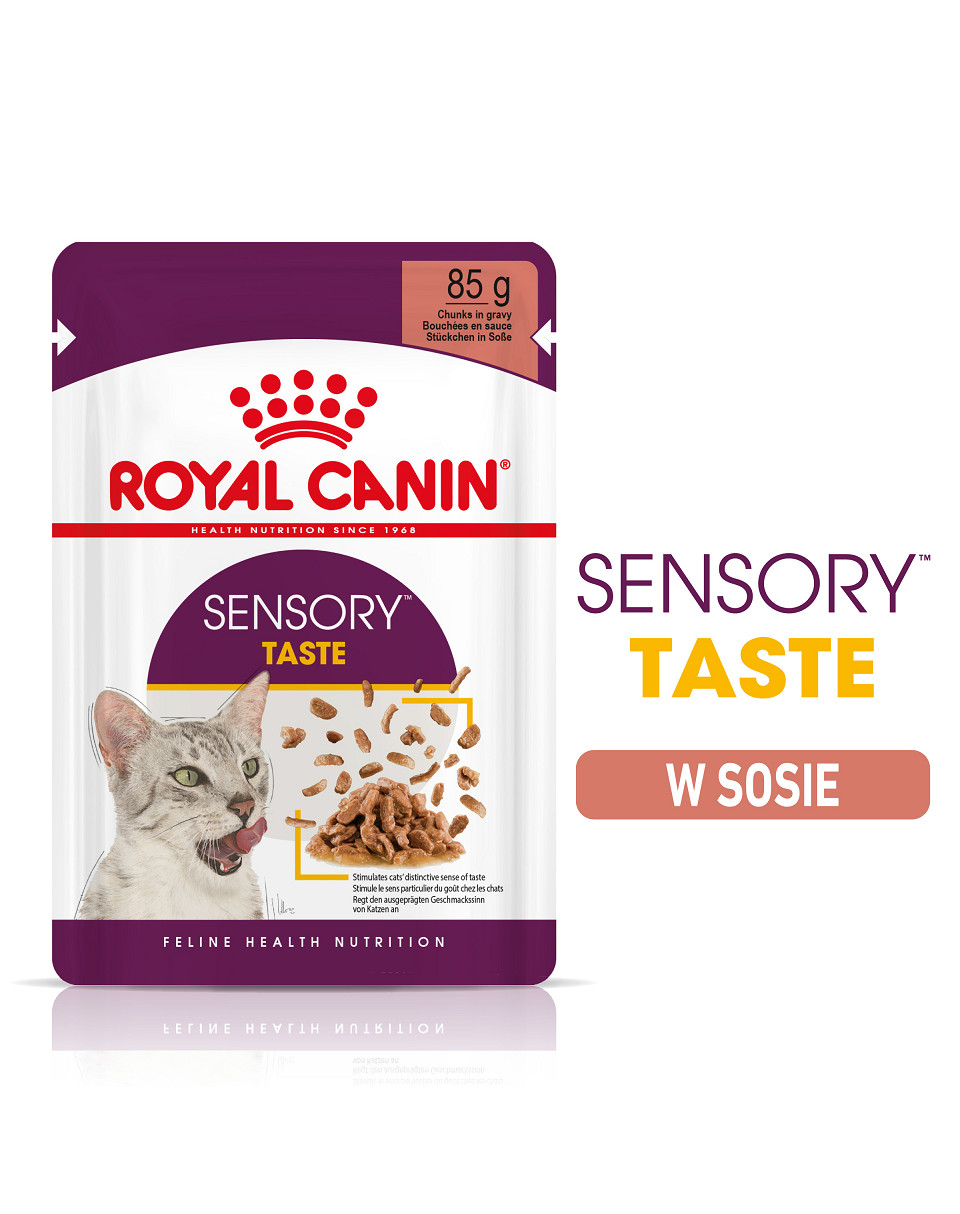 ROYAL CANIN® Sensory Taste Stukjes in Saus is speciaal ontwikkeld om de smaakzin van uw kat te stimuleren en tegelijkertijd haar gezondheid en welzijn te bevorderen.
