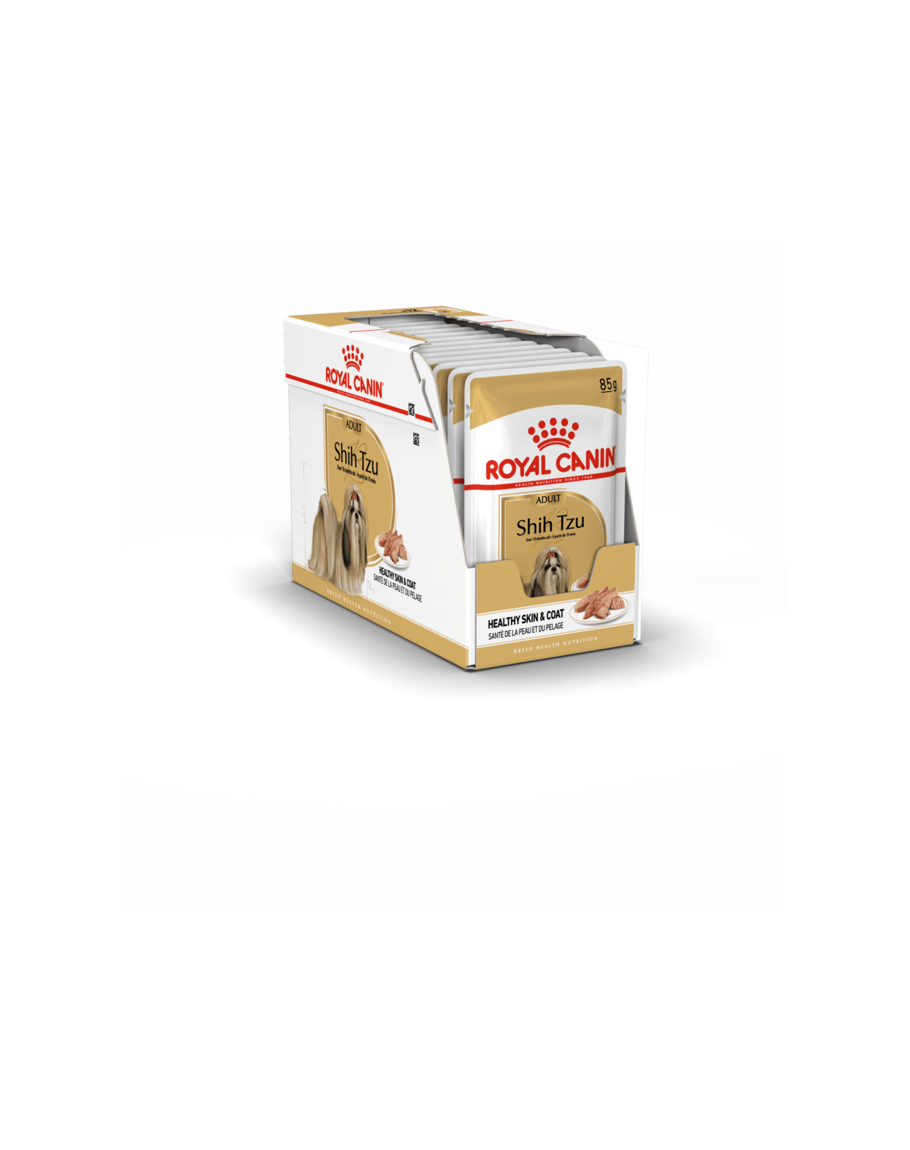 ROYAL CANIN® Shih Tzu Adult Nassfutter ist für erwachsene Shih Tzu-Hunde ab einem Alter von 10 Monaten geeignet und wurde speziell auf die Bedürfnisse dieser Hunderasse abgestimmt.