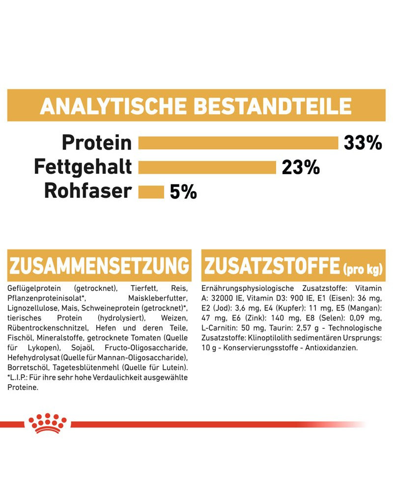 Alle ROYAL CANIN Produkte durchlaufen eine umfassende Qualitätskontrolle, um eine optimale Futterqualität zu gewährleisten und den individuellen Ernährungsbedürfnissen sowie dem Lebensstil Ihrer Katze gerecht zu werden. Das bedeutet, mit ROYAL CANIN Sphynx Adult bieten Sie Ihrer Katze eine hochwertige und ausgewogene Ernährung.