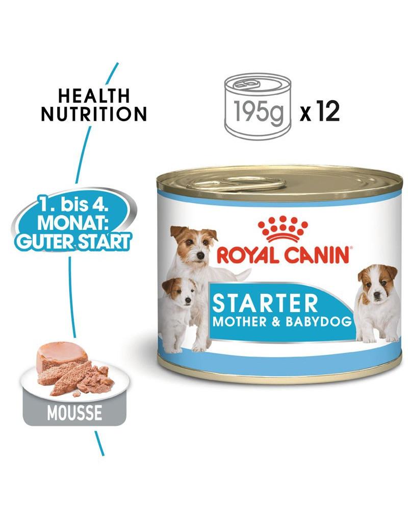 ROYAL CANIN Starter Mousse Mother & Babydog bevat alle hoogwaardige voedingsstoffen die uw teef nodig heeft om haar te ondersteunen tijdens de veeleisende dracht en de daaropvolgende zoogperiode.