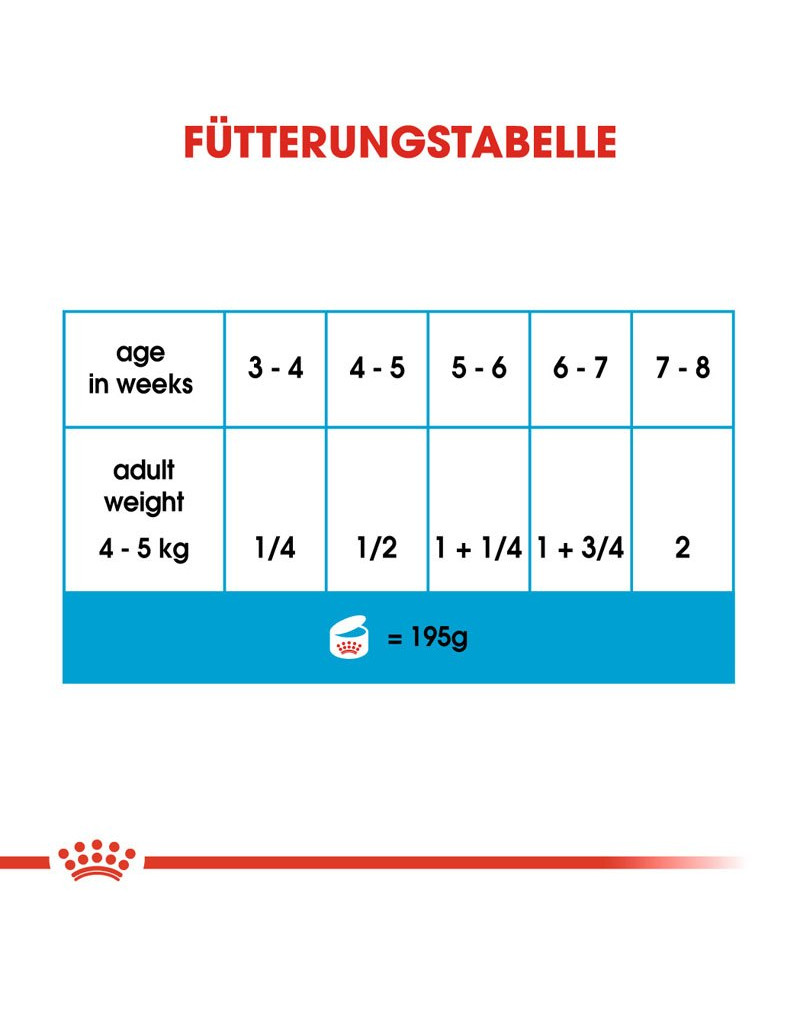 ROYAL CANIN Starter Mousse Mother & Babydog is ook verkrijgbaar als droogvoer in de vorm van knapperige brokjes. Als u een gemengde voeding van droog- en natvoer overweegt, volg dan gewoon onze voedingsaanbevelingen. Zo zorgt u ervoor dat uw hond de juiste hoeveelheid nat- en droogvoer krijgt.