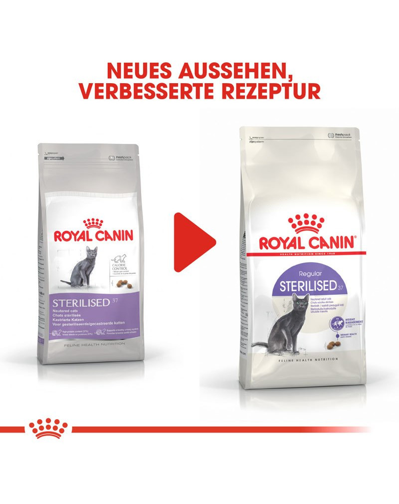 ROYAL CANIN Sterilised 37 heeft bovendien een zorgvuldig ontwikkelde, evenwichtige mineraleninhoud die een gezonde urinewegfunctie bevordert. Tegelijkertijd draagt het hoge eiwitgehalte bij aan het behoud van hun spiermassa.