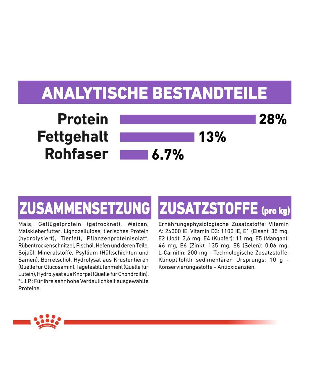 Voor Royal Canin zijn eiwitten zeer belangrijk. Daarom gebruiken we uitsluitend de hoogst mogelijke eiwitbronnen, die aan de behoeften van uw hond kunnen voldoen. De smakelijke formule van ROYAL CANIN® Sterilised Maxi is rijk aan hoogverteerbare eiwitten, zodat wordt gewaarborgd dat uw hond zijn spiermassa behoudt en tegelijkertijd minder vet en calorieën binnenkrijgt.