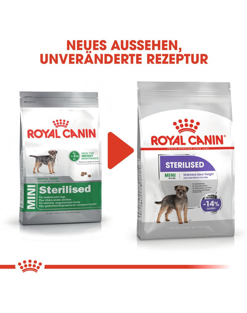 ROYAL CANIN® Sterilised Mini is bewezen een succesvol voer ter voorkoming van gewichtstoename: het bevat 14% minder calorieën dan conventioneel voer voor volwassen honden.