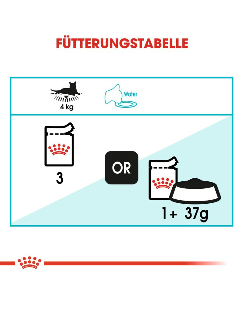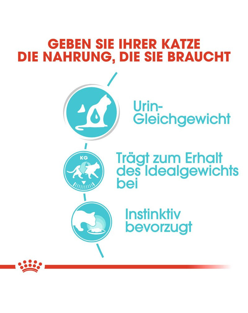 ROYAL CANIN Urinary Care is ook verkrijgbaar als droogvoer in de vorm van krokante brokjes. Als u een gemengde voeding van droog- en natvoer overweegt, volg dan gewoon onze voedingsrichtlijnen. Zo zorgt u ervoor dat uw kat de juiste hoeveelheid nat- en droogvoer krijgt.