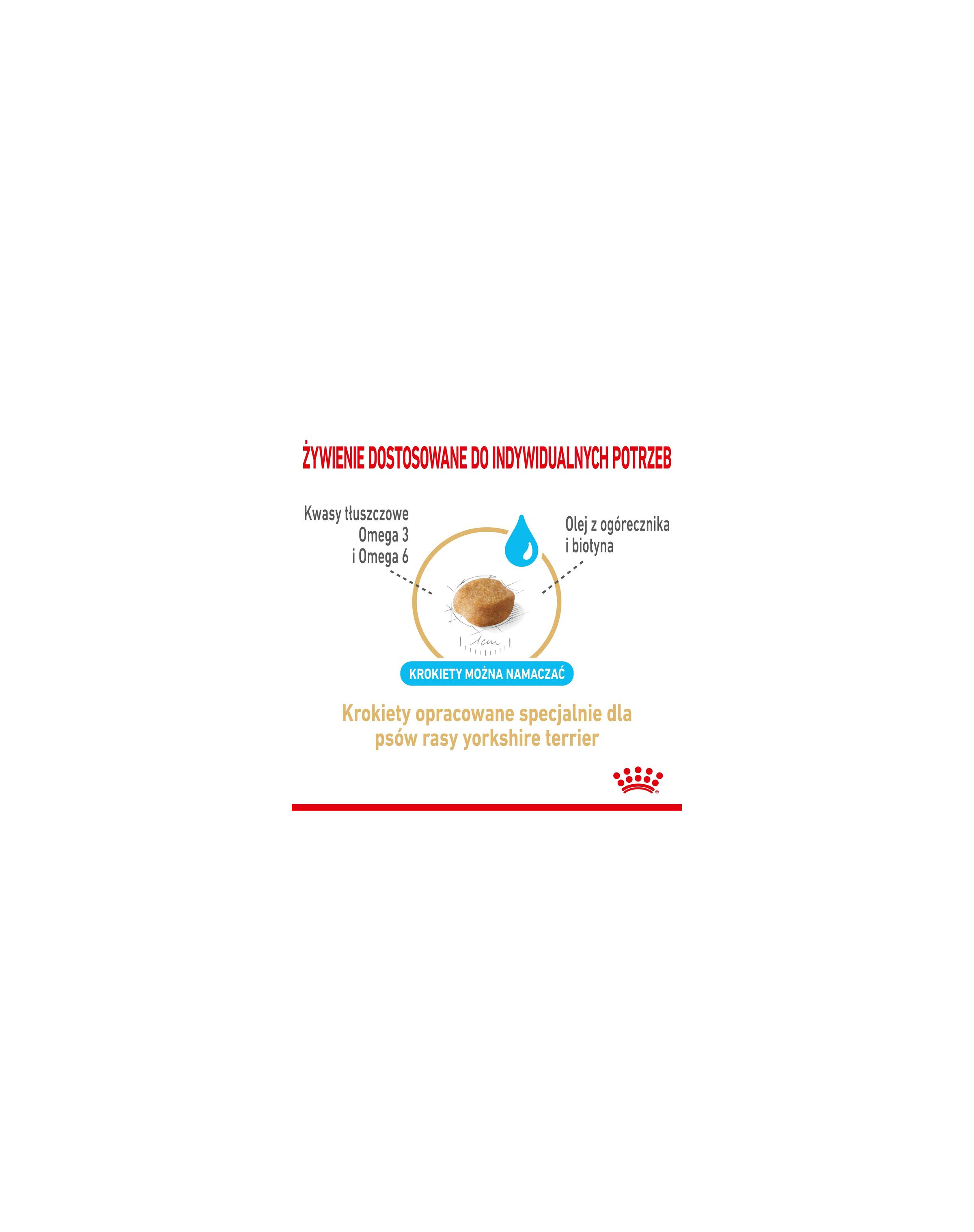 Das unverwechselbare, lange und seidige Fell des Yorkie benötigt besondere Pflege, um die Haarqualität und die Hautgesundheit zu erhalten. ROYAL CANIN Yorkshire Terrier Adult 8+ ist mit Borretschöl, Biotin und Omega-3-Fettsäuren (EPA und DHA) angereichert, um die Barrierefunktion der Haut zu unterstützen, welche wiederum einen wesentlichen Beitrag zur Hautgesundheit leistet. Zusätzlich hilft diese Rassenahrung Ihrem älteren Hund dabei, sein Idealgewicht zu halten.