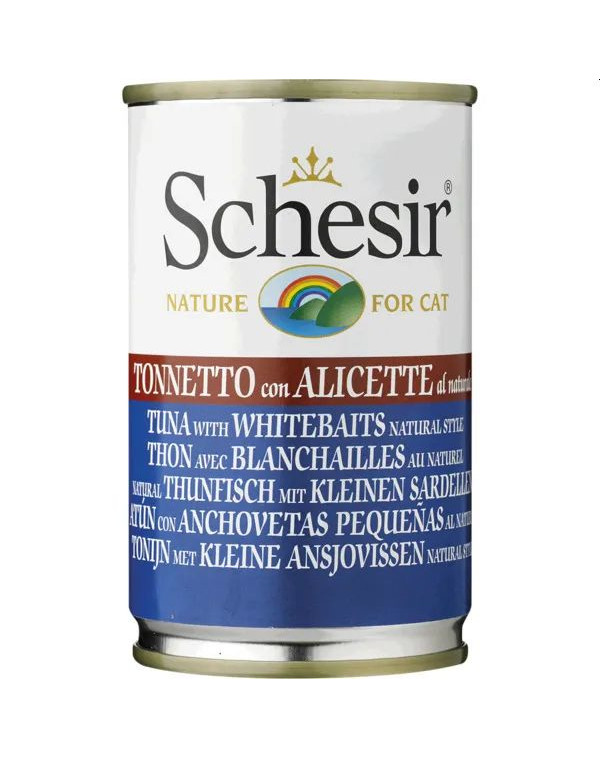 Topkwaliteit van Schesir met 100 % natuurlijke ingrediënten zonder conserveermiddelen en kleurstoffen en alleen de beste delen van vis, gestoomd en met de hand verwerkt in het voordelige formaat in de 140 g-blik.
