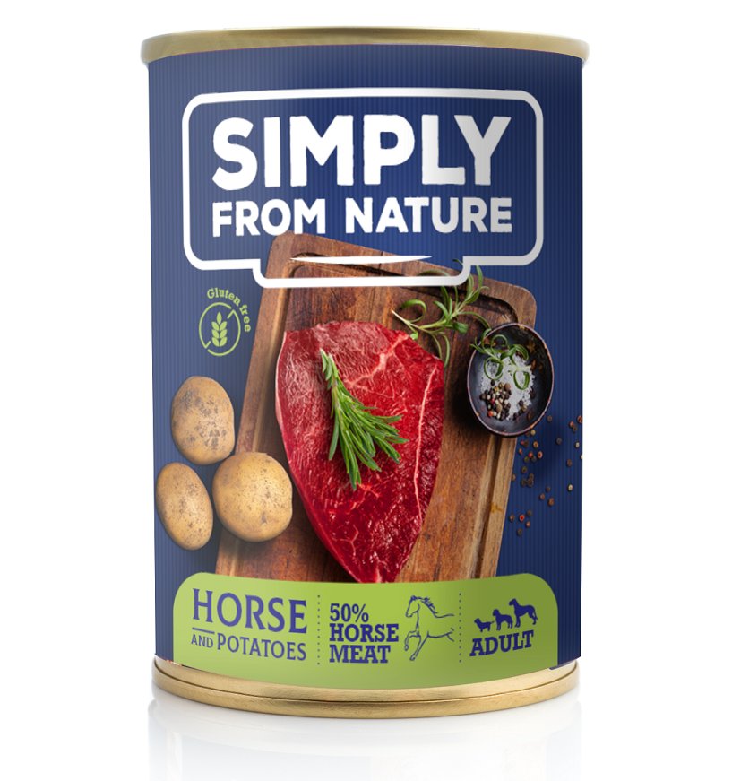 50% paardenvlees (waarvan: 60% spiervlees, 20% long, 9% hart, 5% strottenhoofd, 4% luchtpijp, 2% lever), 50% aardappelen