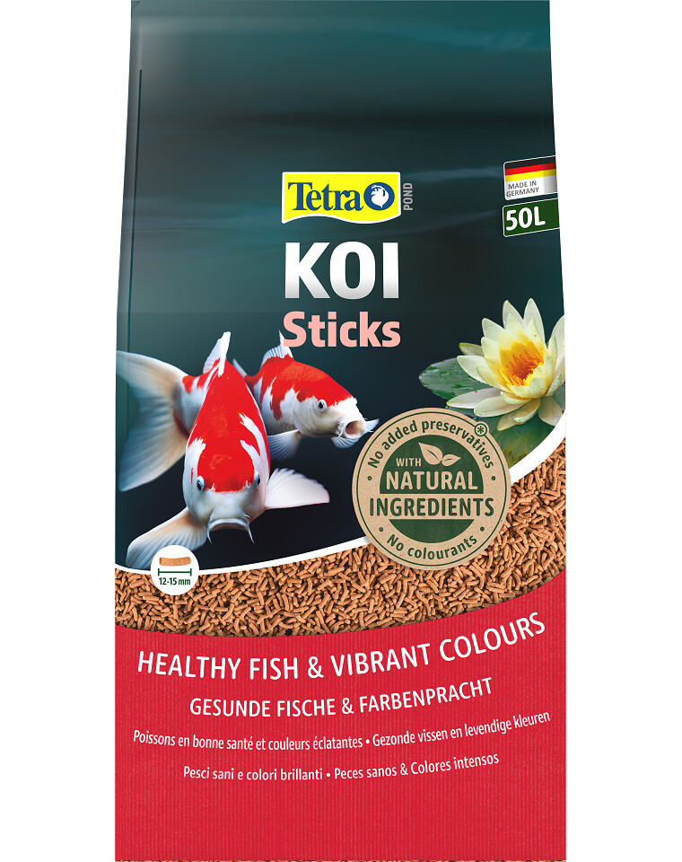 Hauptfutter in Form hochwertiger, schwimmfähiger Futtersticks speziell für die gesunde und ausgewogene Ernährung von Koi entwickelt.