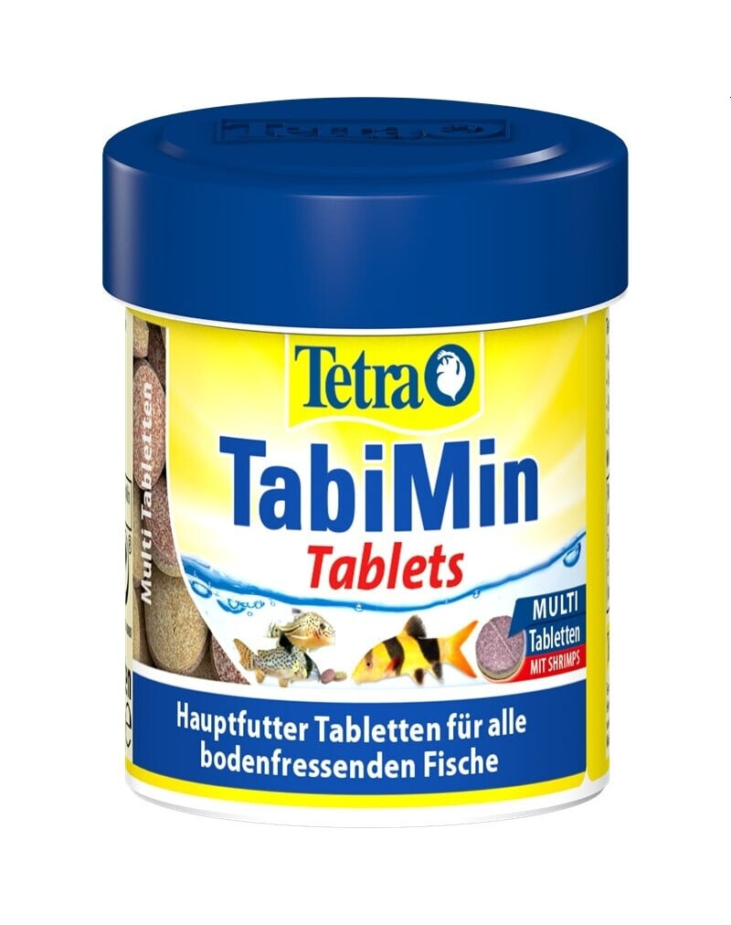 De uitgebalanceerde Tetra TabiMin tablettenvoeding biedt bodemvissen en schuwe vissen een optimale en gevarieerde voeding. De snel zinkende tabletten kunnen indien nodig gericht worden geplaatst, zodat ook schuwe vissen ongestoord kunnen eten. Door de tabletvorm lost het voer langzaam op in het water. De Tetra TabiMin Multi-tabletten zijn tweekleurig. De bruine kant bevat algen met waardevolle mineralen. De geel-beige kant bevat hoogwaardige visolie als bron van Omega-3 vetzuren, carotenoïden voor intense kleurpracht en belangrijke mineralen en sporenelementen. Door het aandeel garnalen is het vissenvoer nog smakelijker. Regelmatige voeding met Tetra TabiMin ondersteunt de gezondheid, kleurpracht en vitaliteit van de vissen.