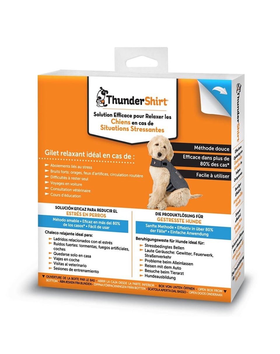Dit is de ideale oplossing voor ontspanning behoeftige viervoeters. Deze zachte methode voor stressvermindering is in meer dan 80 % van de gevallen* effectief en zeer eenvoudig in gebruik. Wat de oorzaak van de stress ook is - blaffen, harde geluiden, alleen thuis zijn of op reis - ThunderShirt biedt uw hond verlichting. Het vest oefent zachte en constante druk uit op het lichaam, waardoor uw hond zich veiliger en rustiger voelt. Nu kan uw lieveling elke dag genieten zonder onnodige spanning. Het hondenvriendelijke THUNDERSHIRT Anti-Stress-Vest is een echte revolutie in de zorg voor het welzijn van uw hond.