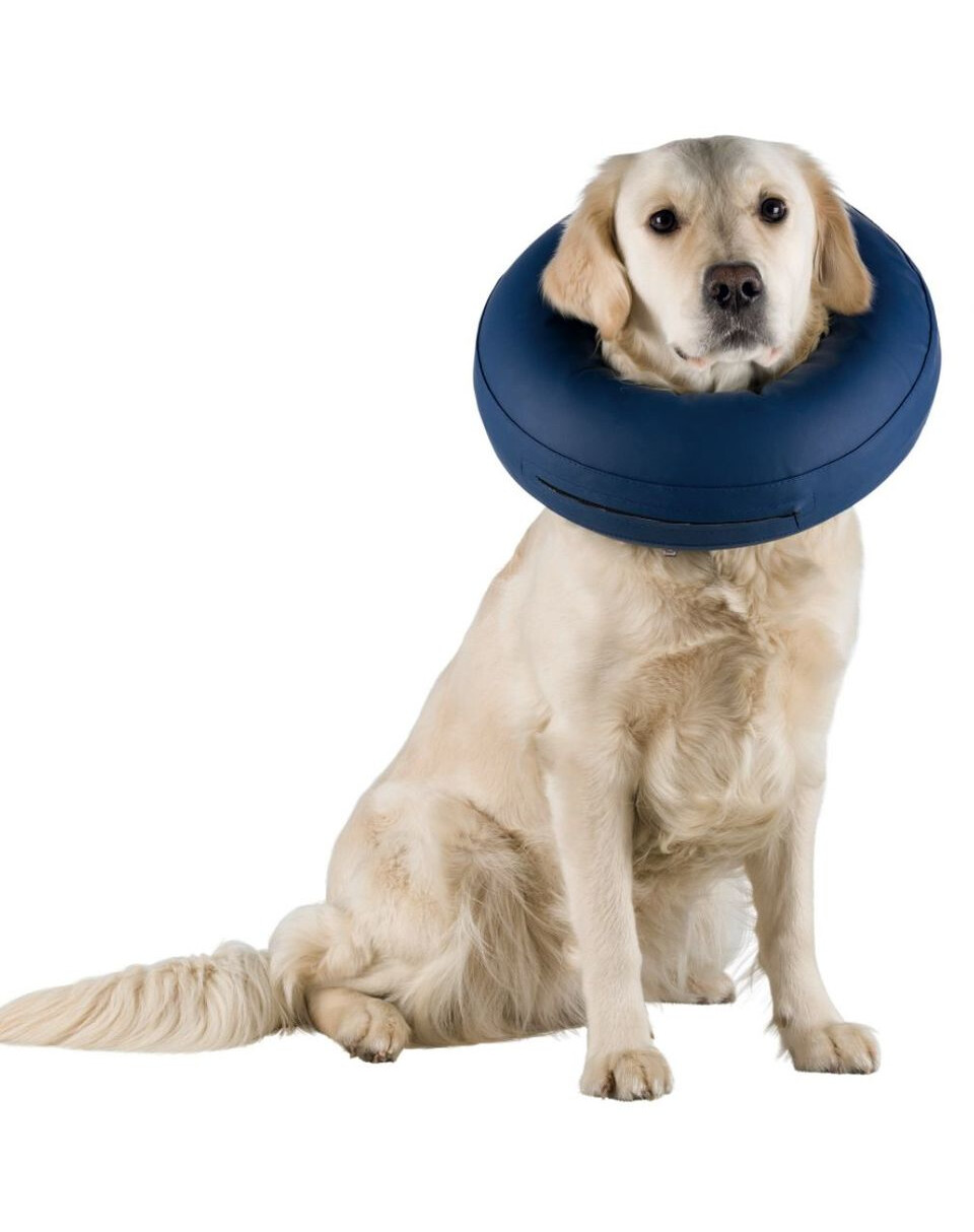 Comfortabele, opblaasbare beschermkraag. Beschermt hoofd, borst en rug, voorkomt lekkage- en bijtwonden. Beschermt de hond tegen stoten tegen muren, voorwerpen of trappen, zonder het zicht en het gehoor te beperken. Gemaakt van zacht en flexibel materiaal, maakt de Rzeby-sluiting een snelle en nauwkeurige bevestiging mogelijk. Lussen aan de halsband voorkomen verschuiven. Beïnvloedt het drinken, snuffelen of spelen niet.