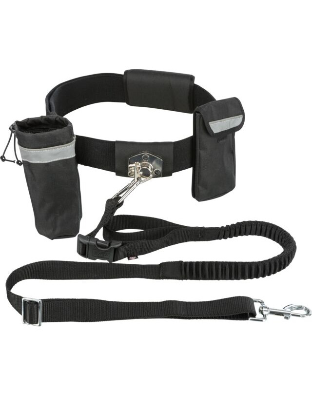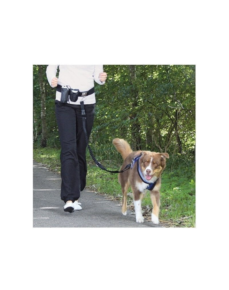 De buikgordel met lijn is een onmisbaar product voor alle joggers, Nordic walking- en trekkingliefhebbers. Dankzij het innovatieve draaipunt draait de lijn niet in de knoop en zorgt het voor vrije beweging. Hoe hard uw hond ook aan de lijn trekt, de uitrekking van de elastische lijn dempt plotselinge rukken.