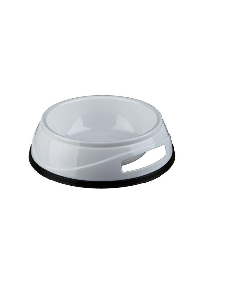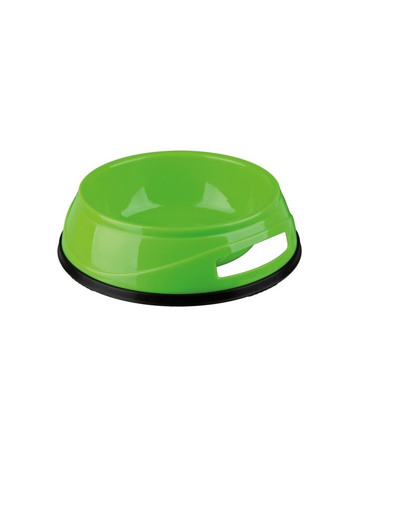 Zware plastic schaal. Voorzien van een rubberen rand die verschuiven voorkomt.