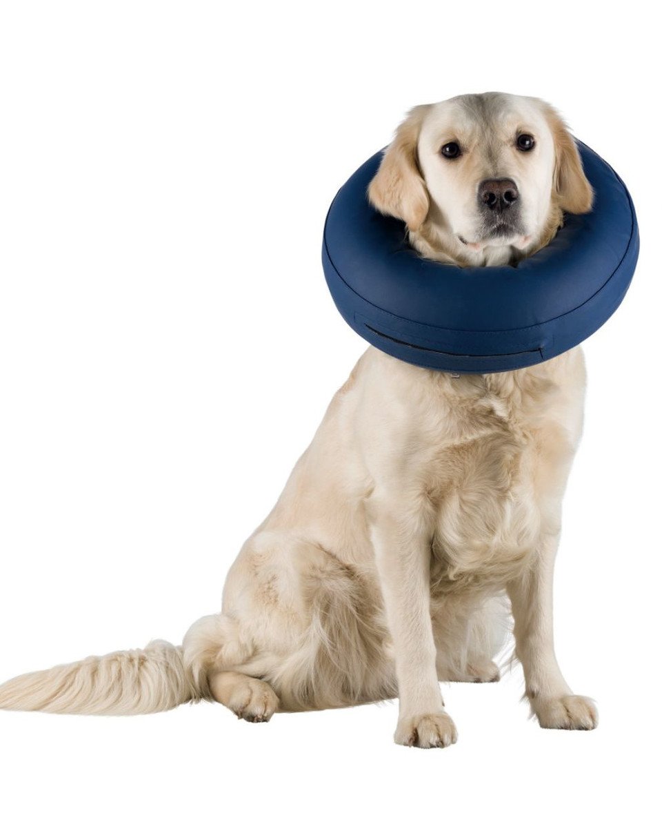 Bequemer, aufblasbarer Schutzkragen. Schützt Kopf, Brust und Rücken, verhindert Leck- und Bisswunden. Schützt den Hund vor Stößen gegen Wände, Gegenstände oder Treppen, ohne die Sicht und das Gehör einzuschränken. Aus weichem und flexiblem Material gefertigt, ermöglicht der Rzeby-Verschluss ein schnelles und präzises Anlegen. Schlaufen am Halsband verhindern ein Verrutschen. Beeinträchtigt nicht das Trinken, Schnüffeln oder Spielen.