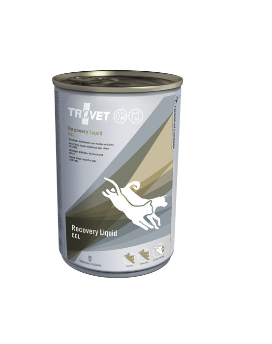De dagelijkse dosis moet over meerdere maaltijden verdeeld worden. Water moet te allen tijde beschikbaar zijn. Gebruiksinstructie: Het wordt aanbevolen om voor gebruik een dierenarts te raadplegen. Schud de blik goed voor het openen en consumeer binnen 24 uur, ongebruikte hoeveelheden in de koelkast bewaren. Geef het voer bij voorkeur op kamertemperatuur om een maximale smakelijkheid te waarborgen. TROVET Recovery Liquid kan bij gebrek aan of slechte eetlust via een spuit of sonde worden toegediend. Aanbevolen gebruiksduur: tot het herstel van de eetlust.