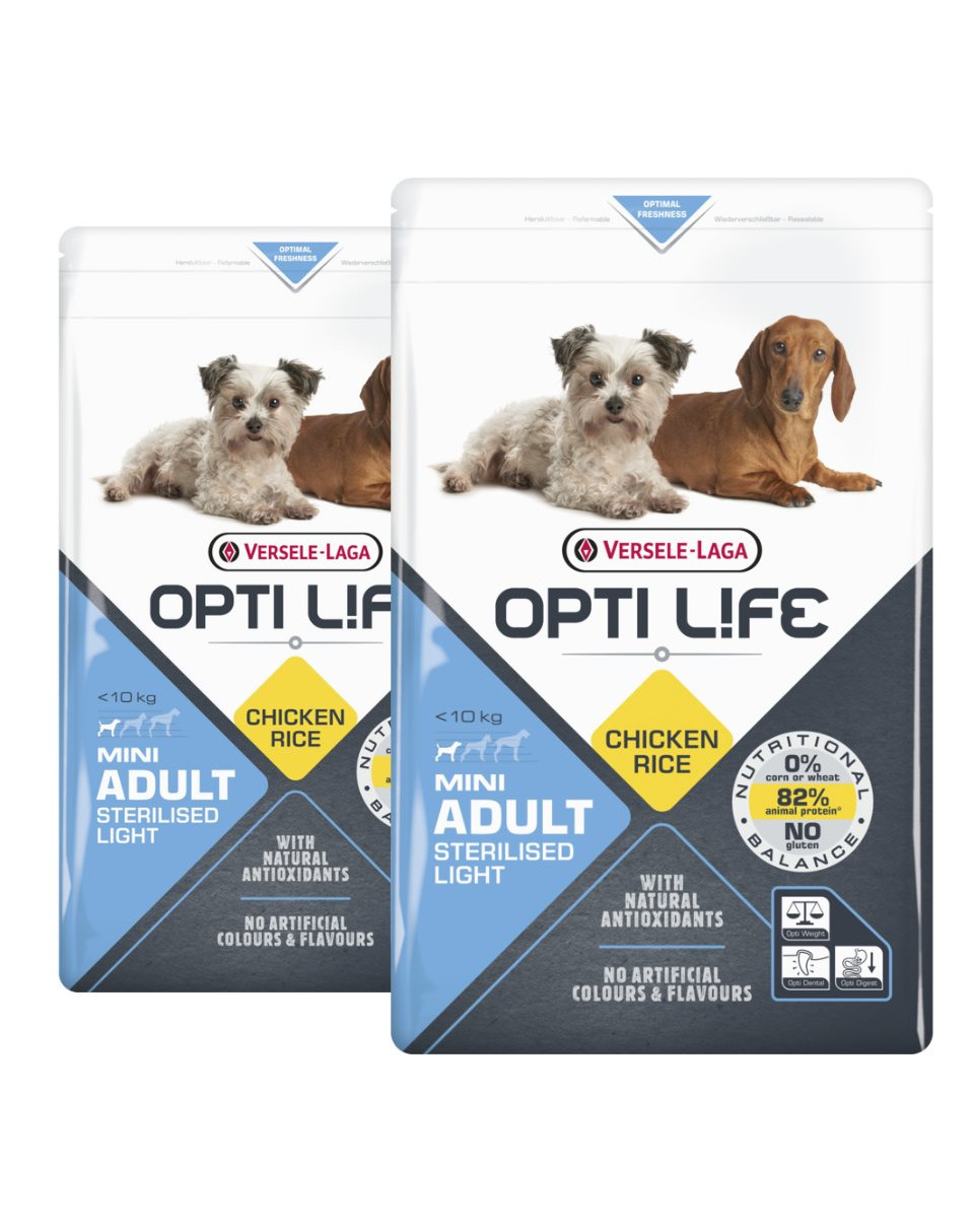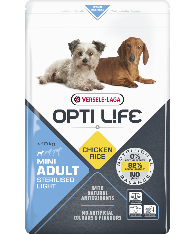 De Opti Kibble-formule zorgt ervoor dat de brokjes zijn aangepast aan de mogelijkheden van honden van kleine rassen. De Opti Life Sterilised/Light voerformule bevat L-Carnitine.