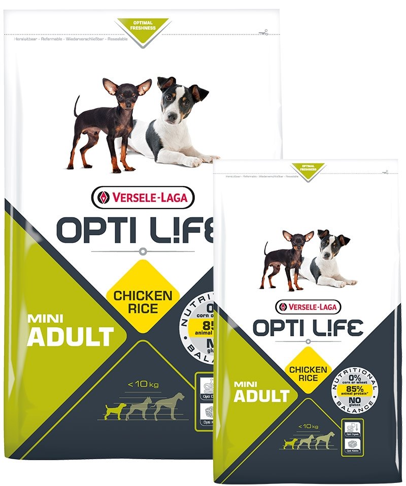 Opti Life Adult Mini voor kleine rassen (<10 kg) heeft een voedingsmatig perfect uitgebalanceerde receptuur op basis van kip en rijst, die speciaal is ontwikkeld om uw hond in beste conditie te houden.
